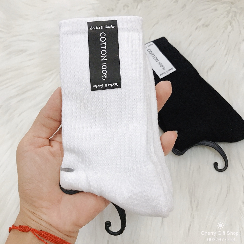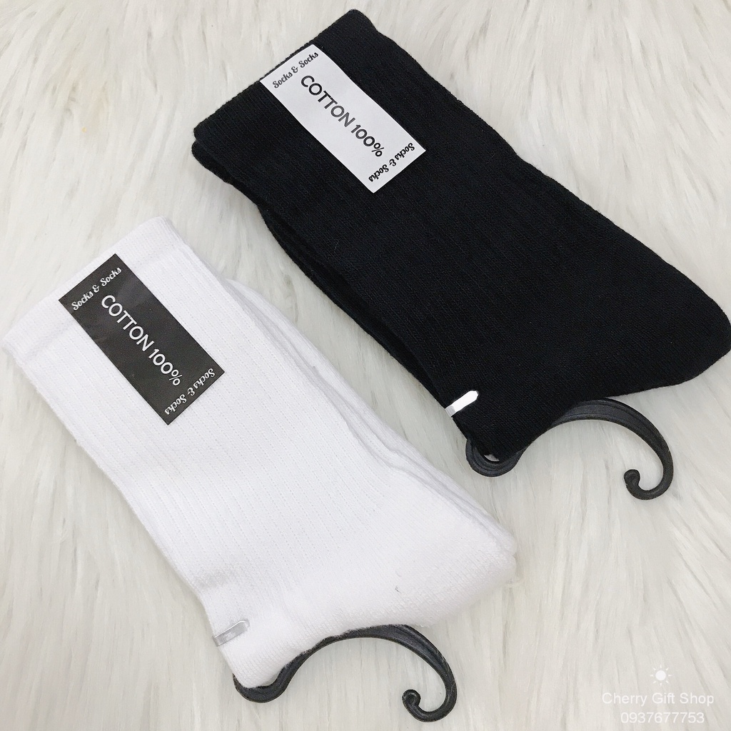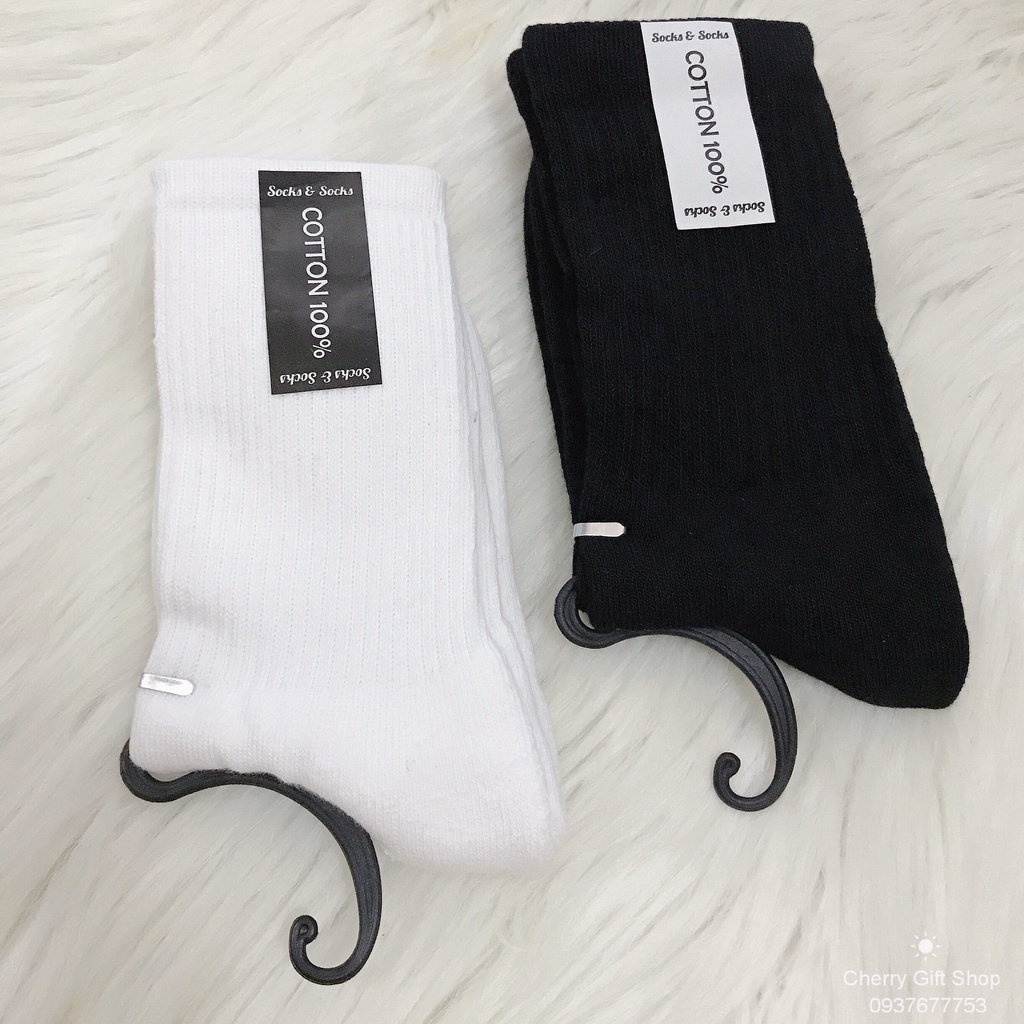 Vớ Cổ Cao UNISEX Vớ Nam Nữ - Tất Vớ Cotton Đen Trắng