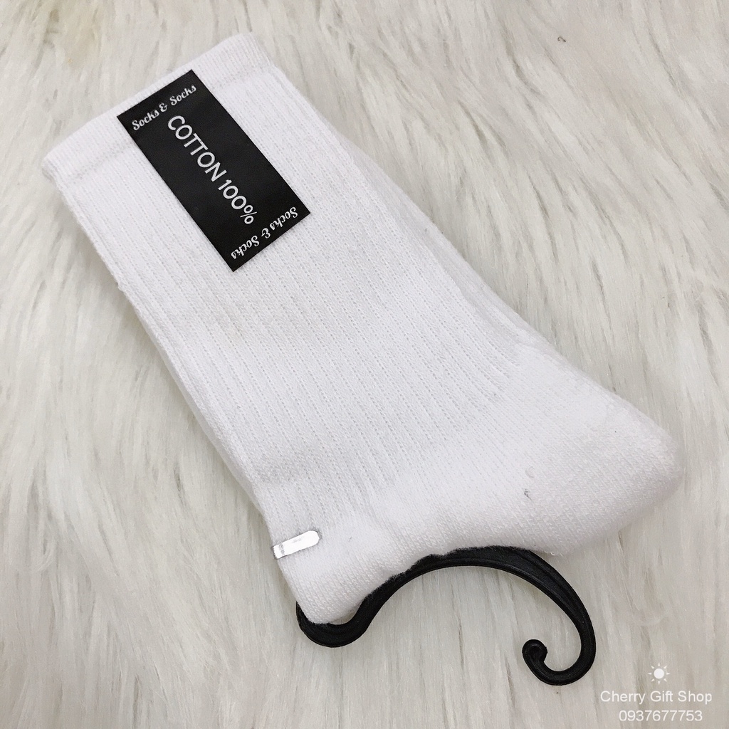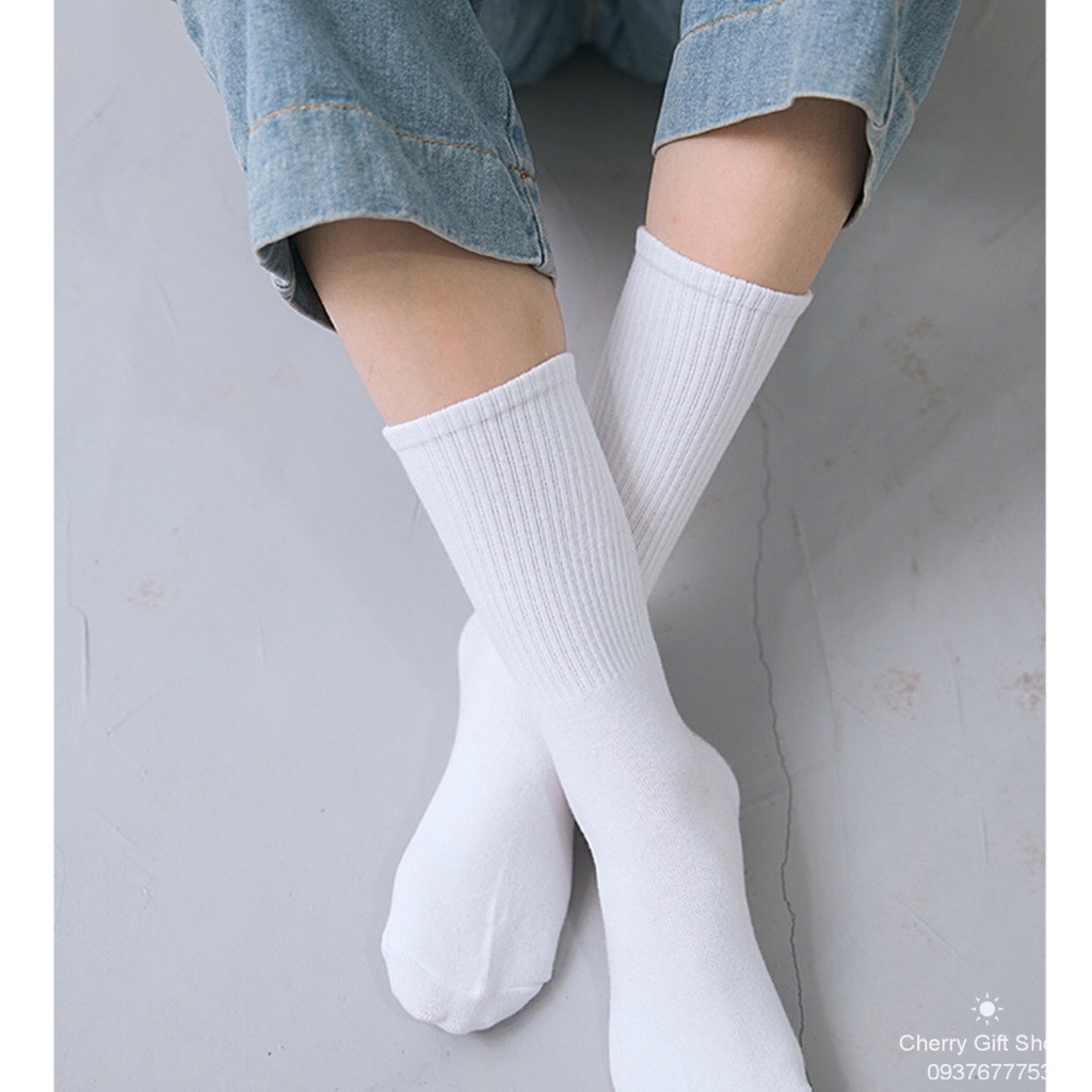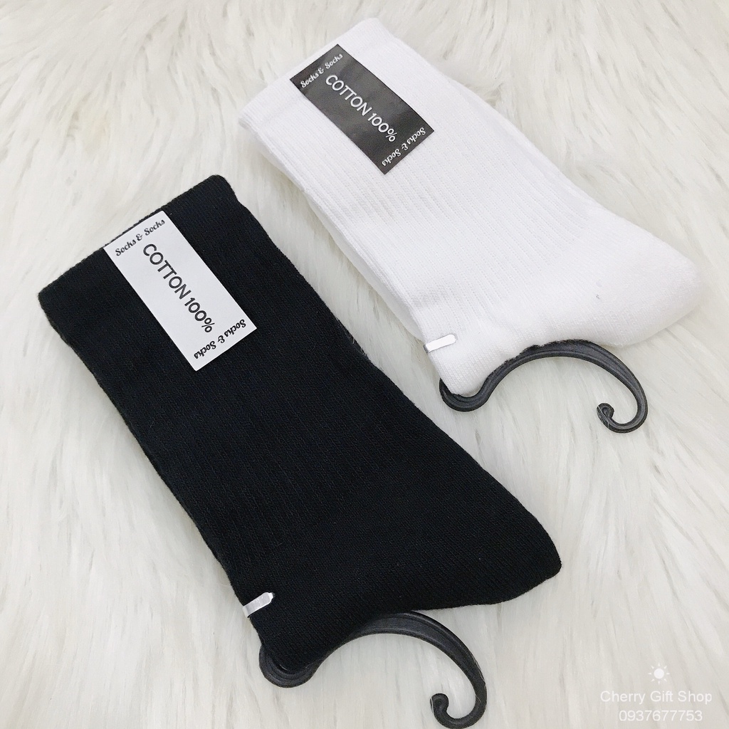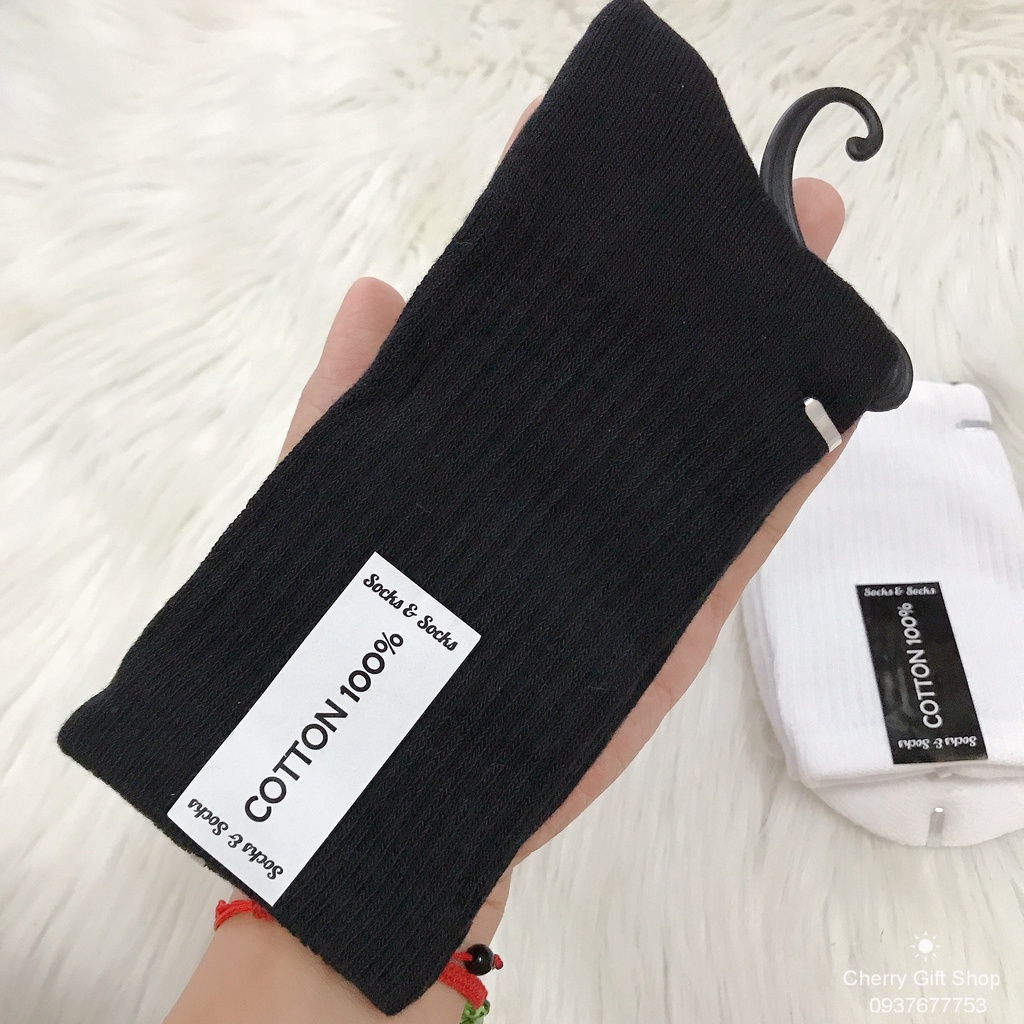 Vớ Cổ Cao UNISEX Vớ Nam Nữ - Tất Vớ Cotton Đen Trắng