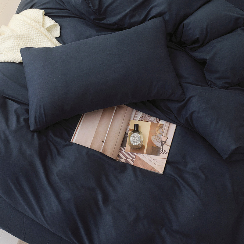 Bộ bốn món cotton chải màu đồng nhất, phong cách đơn giản, ga trải giường, vỏ chăn, vỏ chăn có thể giặt