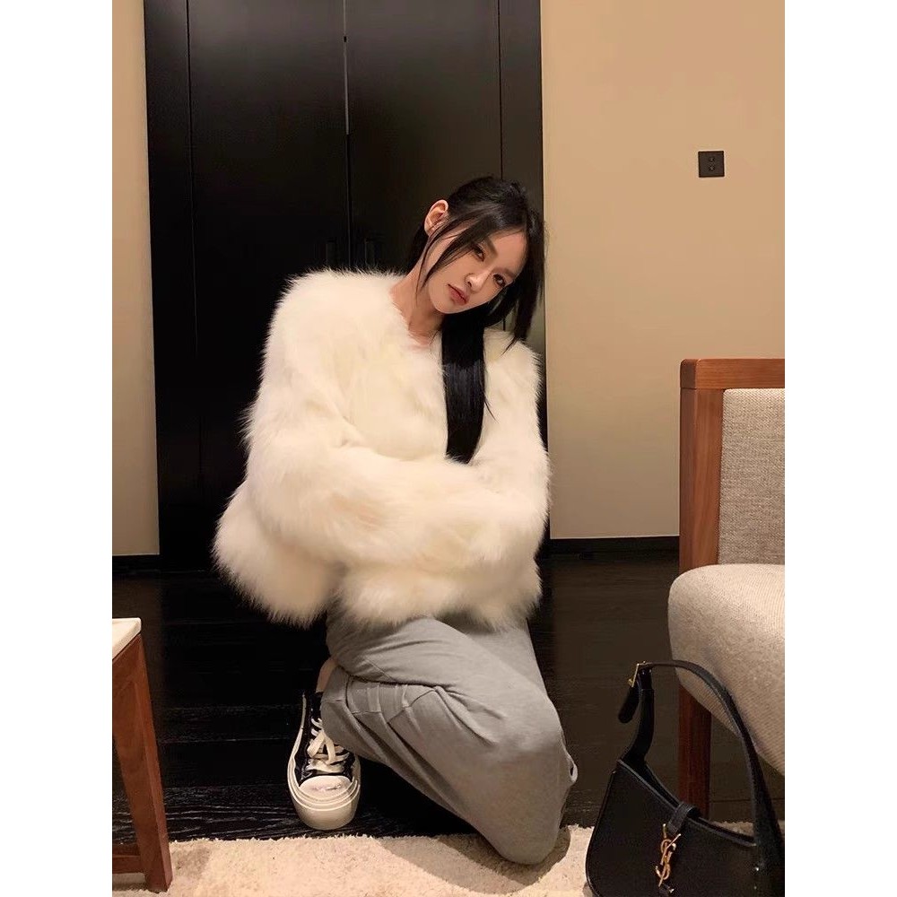 Phong Cách Hàn Quốc Giả Lông Mùa Thu Đông Áo Khoác Nữ Mỏng Dáng Ngắn Cho Nữ Lông Cáo Mềm Mịn