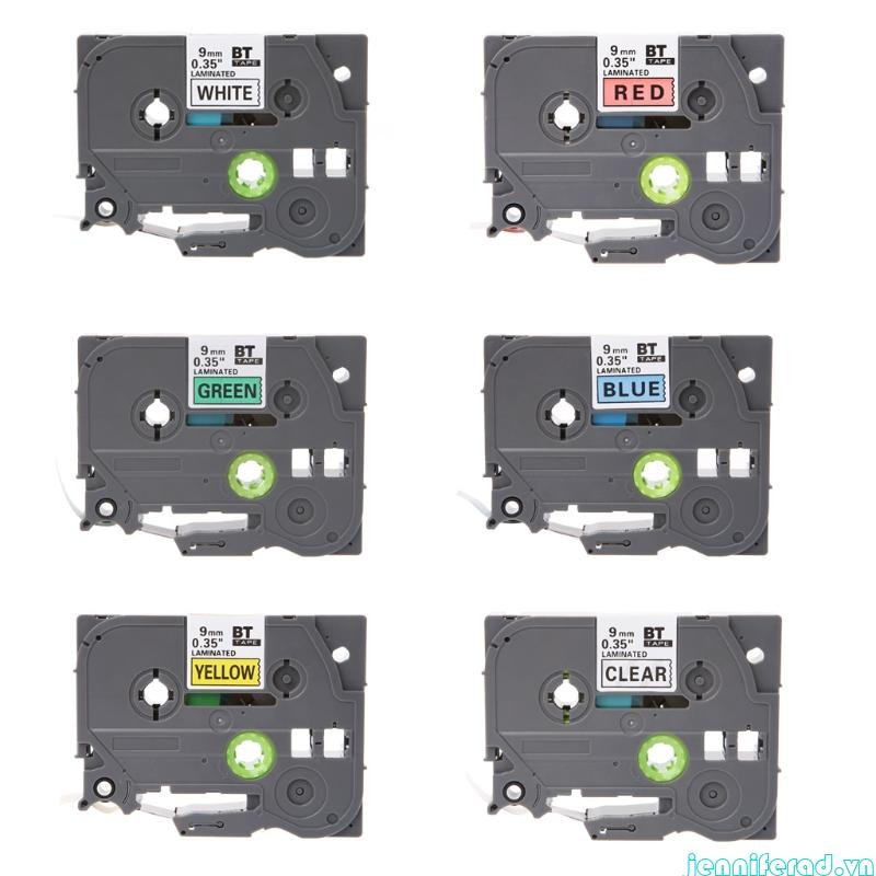 Jenniferad cho Brother P cho Băng nhãn cảm ứng 9mmx8m Đen trên trong suốt Trắng Đỏ Xanh Vàng Xanh lam cho Nhãn Ptouch M