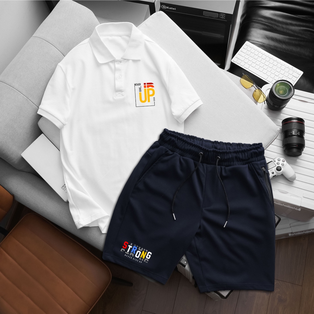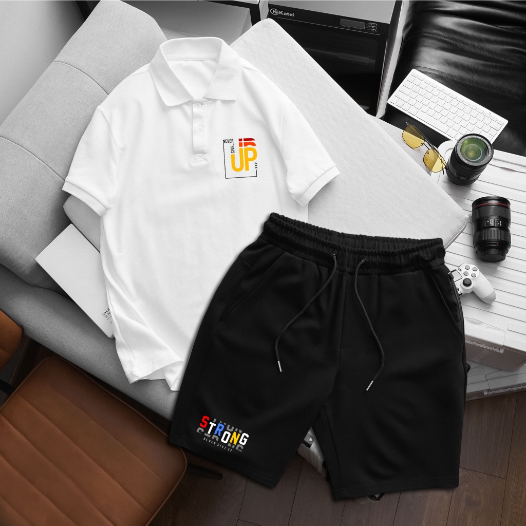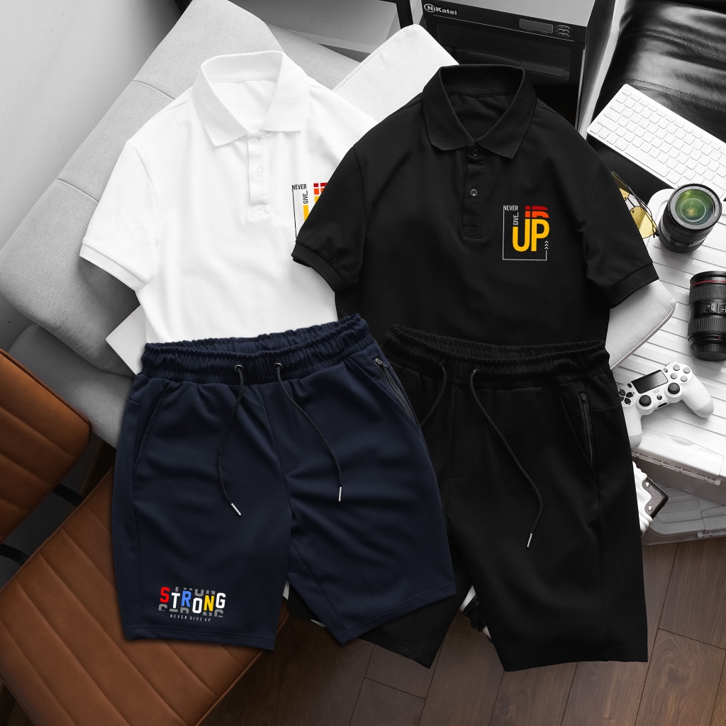 Bộ Polo Nam Cotton Cá Sấu, Áo Polo Nam 100% Cotton tự nhiên, Polo Never Give Up New Collection 2025