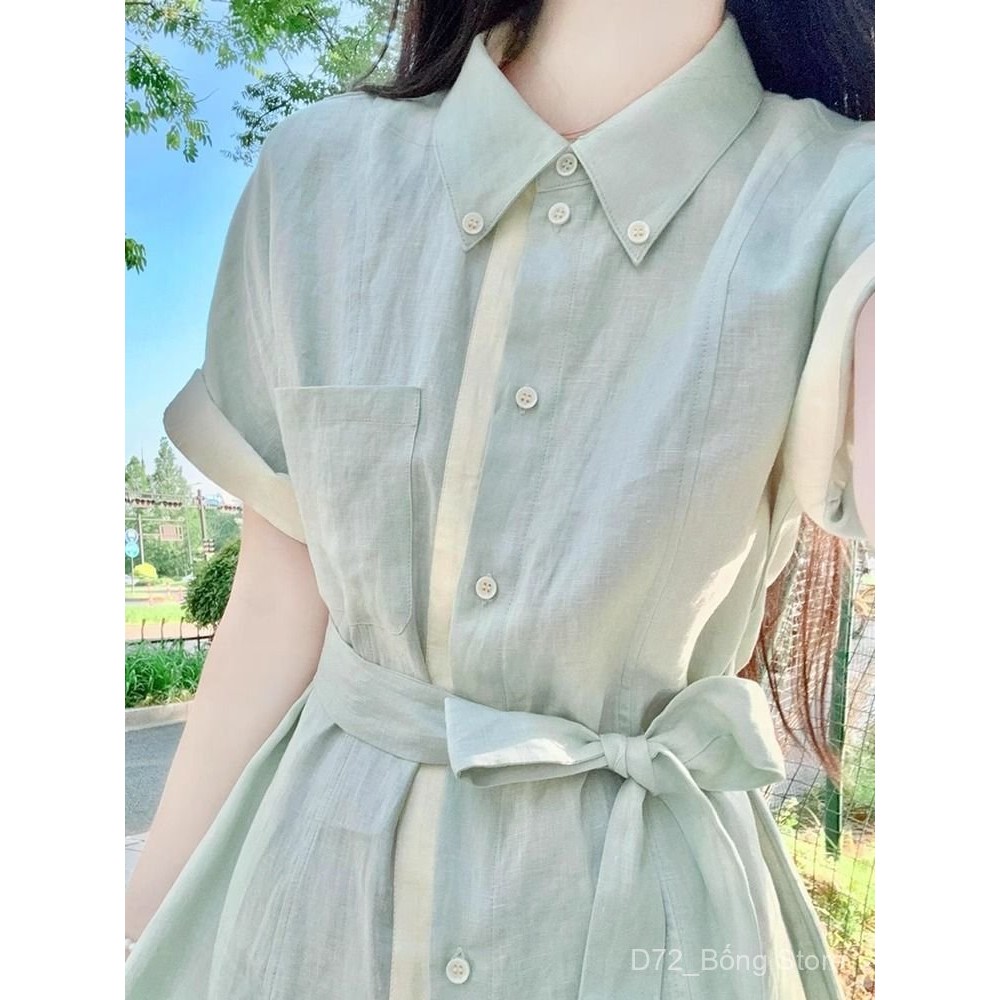 Đầm cổ polo màu sắc phong cách Pháp rộng rãi cho sinh viên nữ, khí chất siêu tiên nữ, đầm A-line thon gọn eo
