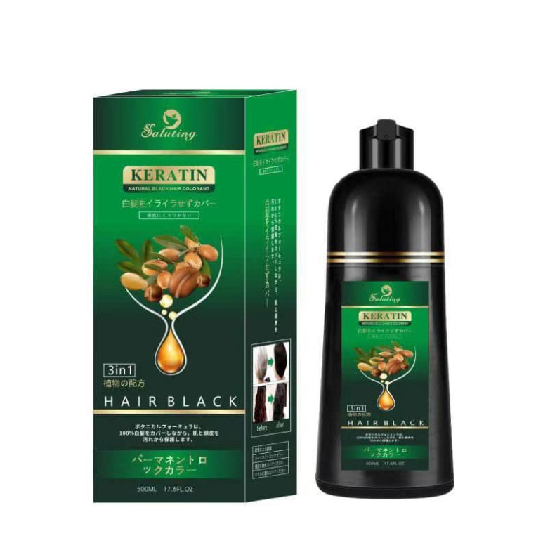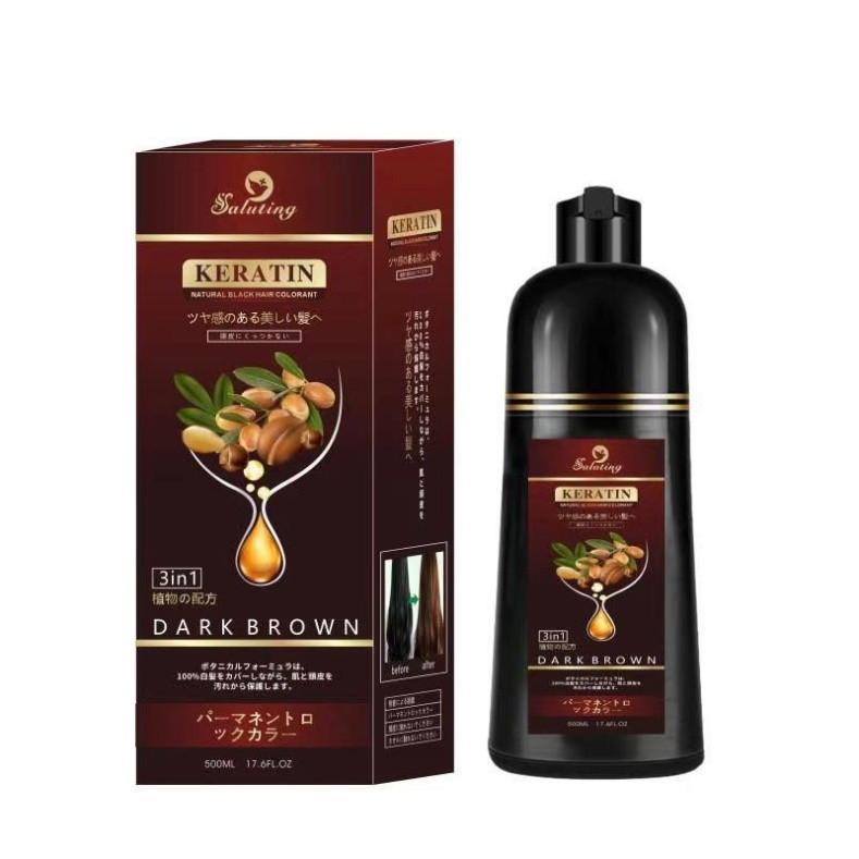 Dầu gội phủ bạc KERATIN 500ml SALUTING nhật bản - Dầu gội nhuộm tóc đen nhuộm tóc nâu mắc ca thảo dược tự nhiên an toàn