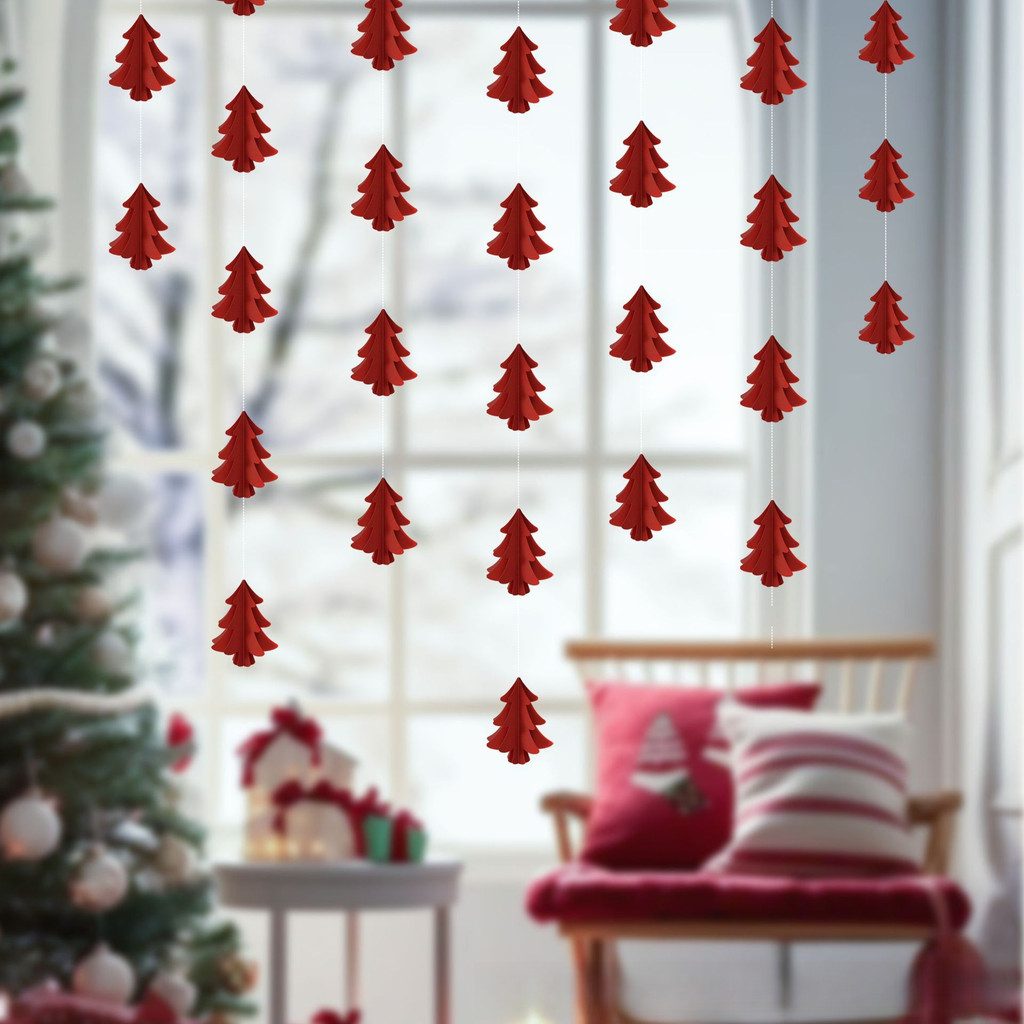 Đồ trang trí Giáng sinh mới thiết kế 3D, hoa treo bằng dây giấy, tạo không khí cho ngày lễ
