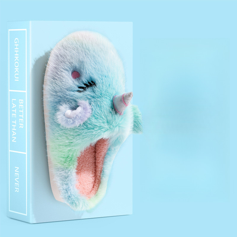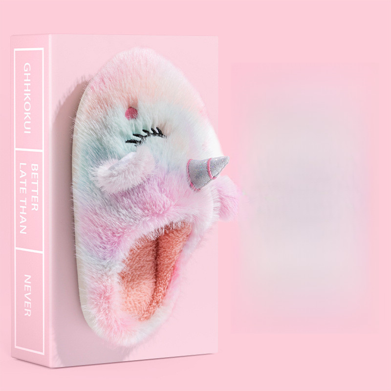 Đôi dép bông cho phụ nữ, đi trong nhà hình kỳ lân màu kem dễ thương cho mùa thu và đông