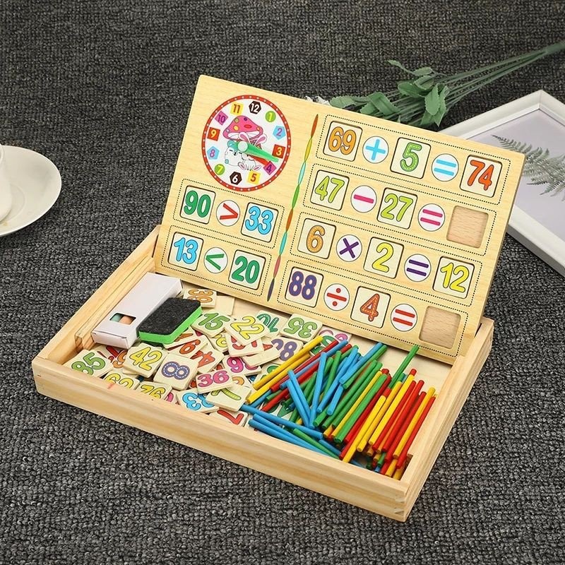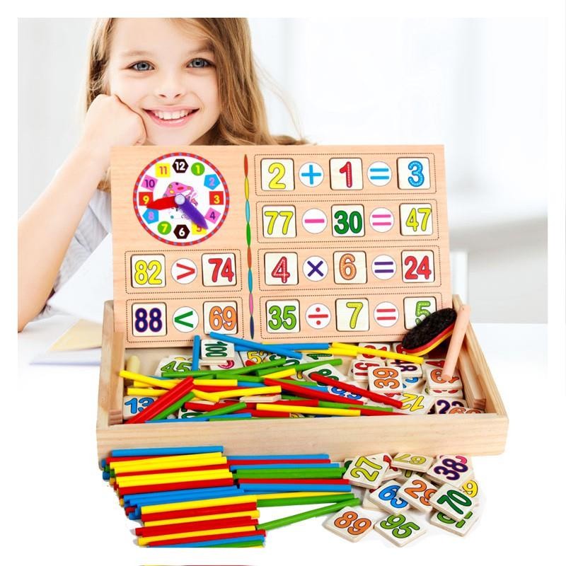Đồ Chơi Học Toán Bằng Gỗ Cho Bé – Bộ Domino Số Đếm 100 Que Tính, Học Cộng Trừ Nhân Chia, Rèn Tư Duy Logic STEM