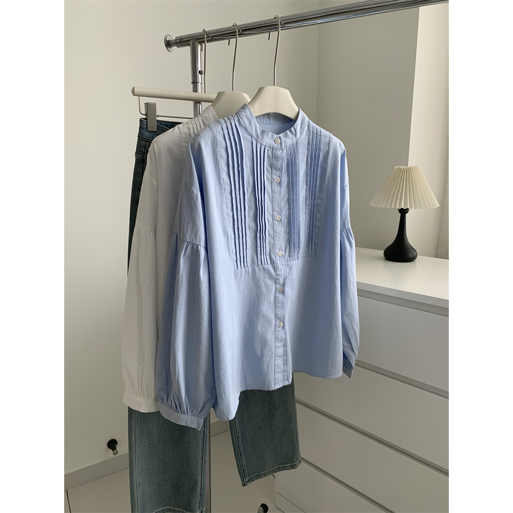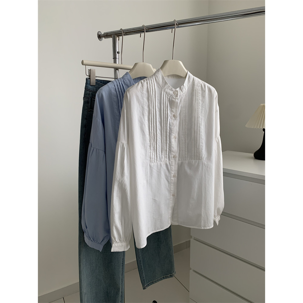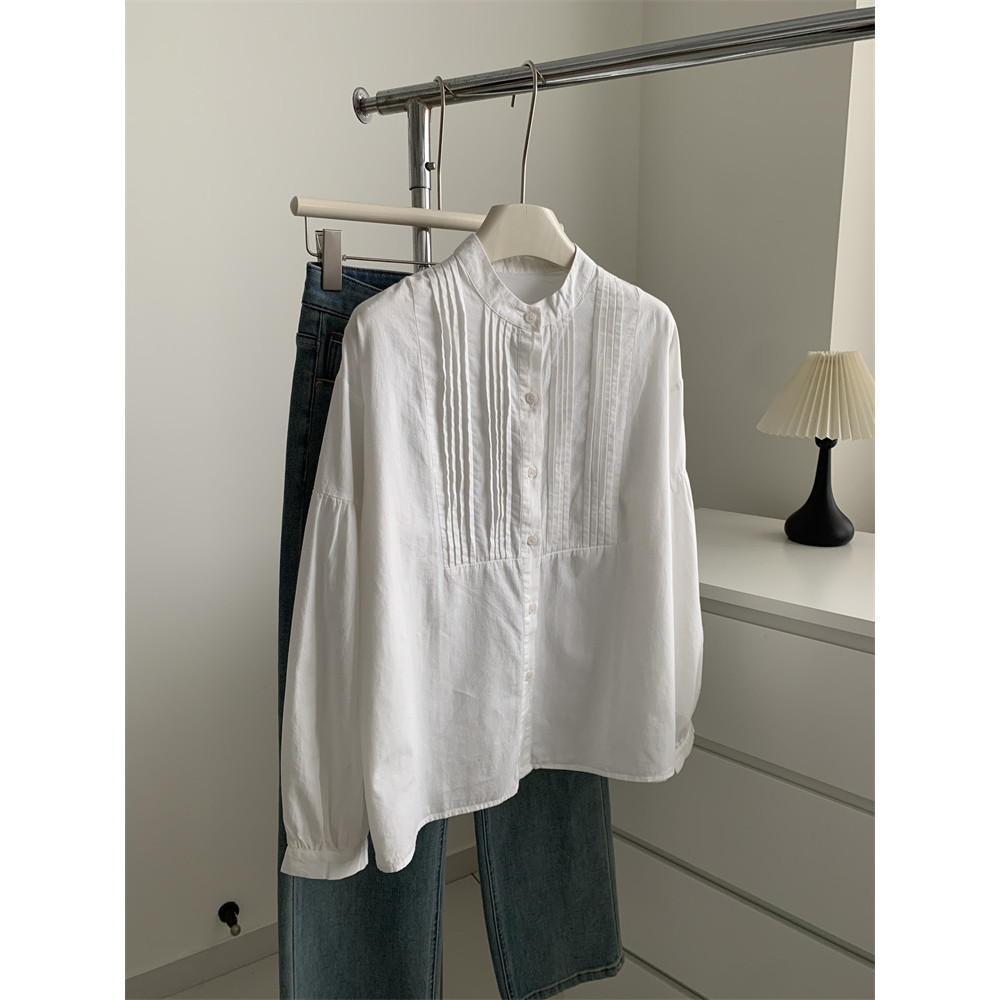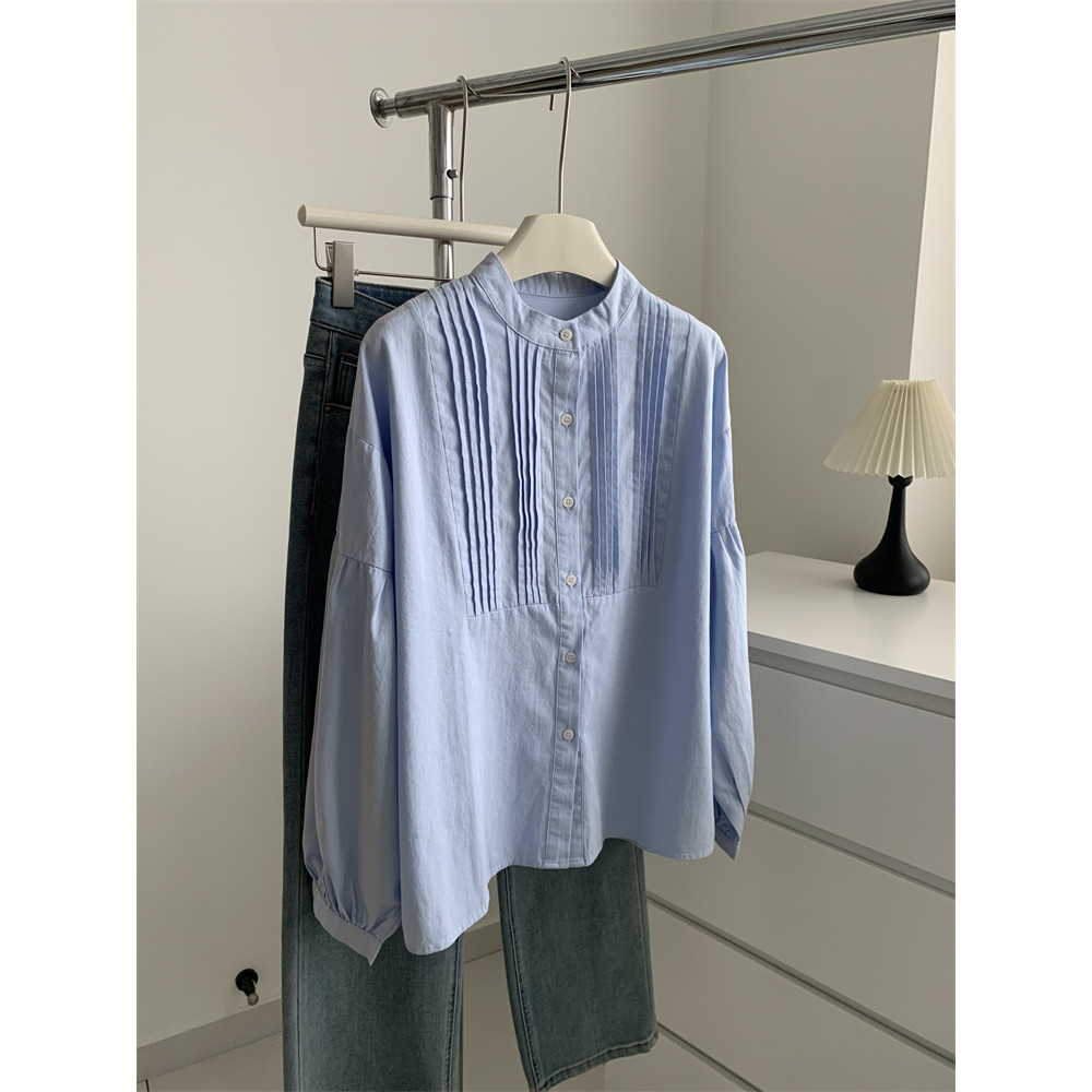 Áo sơ mi cổ tròn xếp ly kiểu Pháp cho phụ nữ, áo dài tay giảm tuổi nhẹ nhàng, mùa xuân và thu