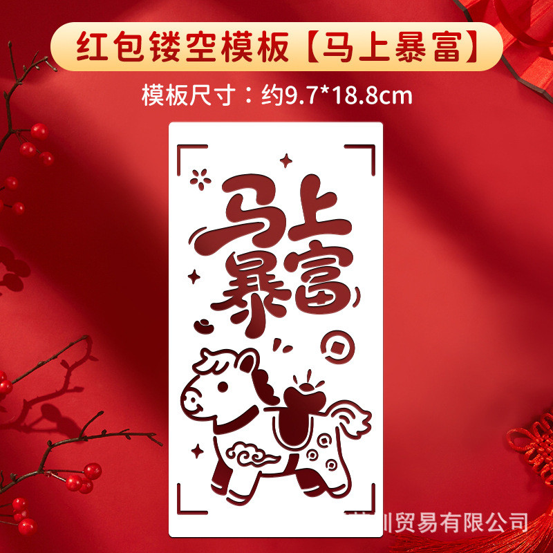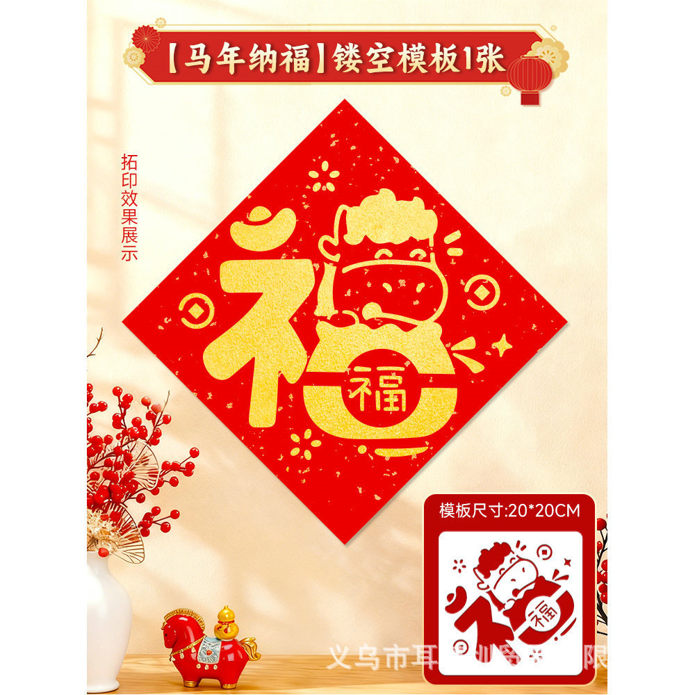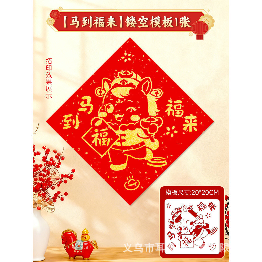 Nhân vật Fu cọ xát Thủ công tự làm gói vật liệu năm con ngựa Khuôn vẽ tranh năm rỗng Mẫu giáo Cha mẹ-Con In nhân vật Fu Bản mẫu nhân vật Fu cọ xát thủ công gói vật liệu tự làm khắc năm ngựaJS
