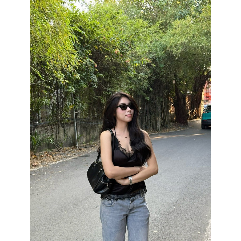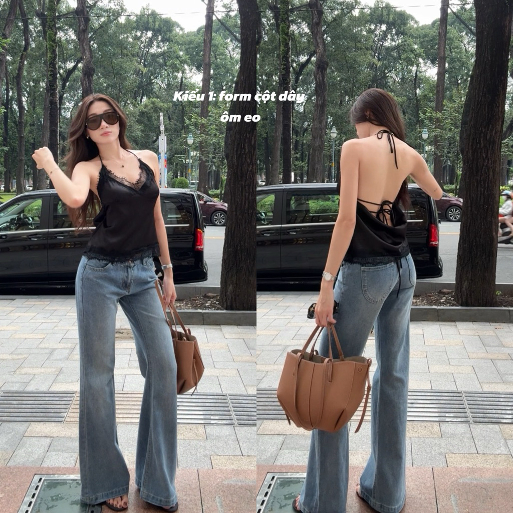 [Hàng sẵn ] Áo Lụa Cổ Yếm Phối Ren, Lưng Cổ Đổ Cột Dây 119.items (mặc 2 kiểu)