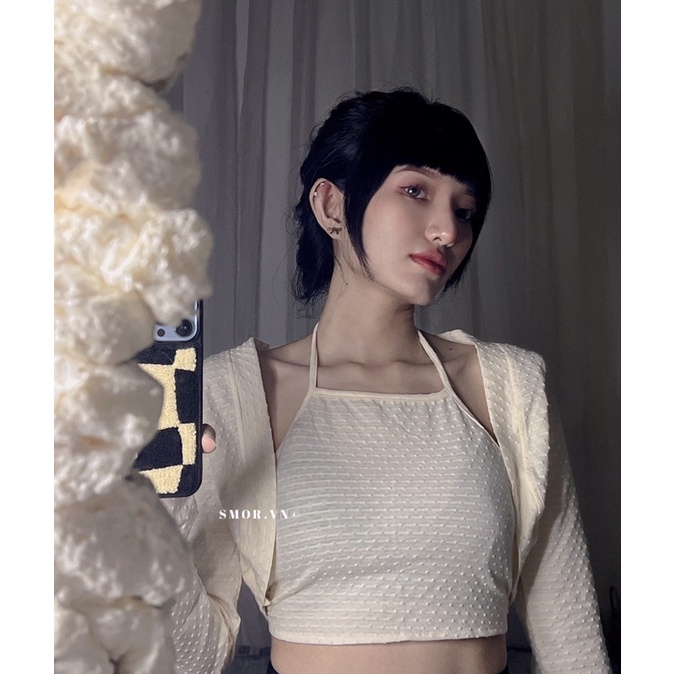 [ ẢNH THẬT ĐỘC QUYỀN SMOR.VN ] Set áo yếm cột lưng và khoác, chất cotton 100%, CORTE SET