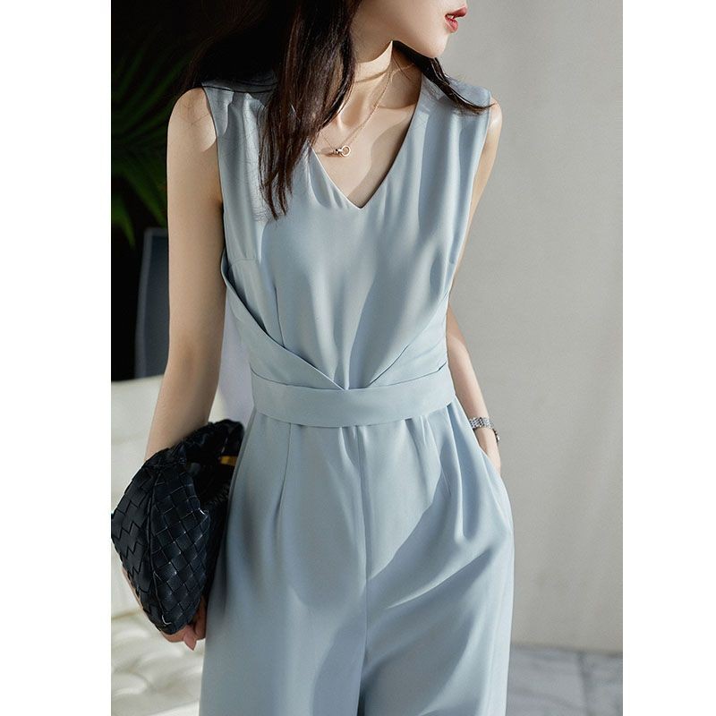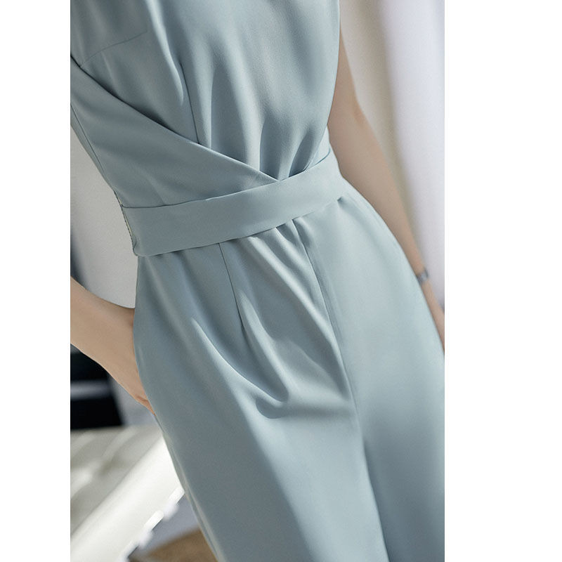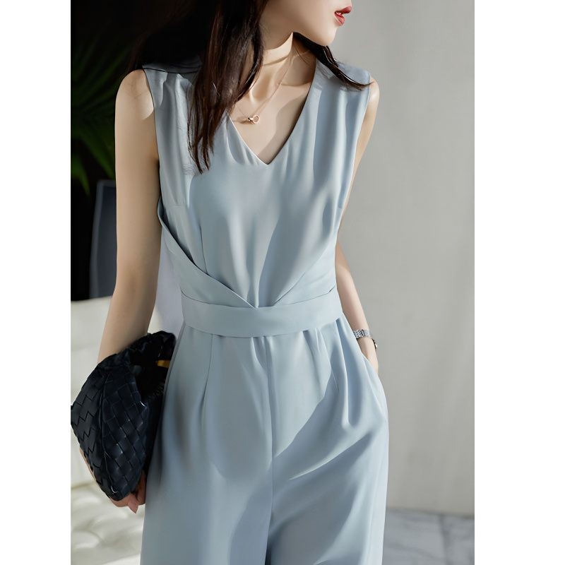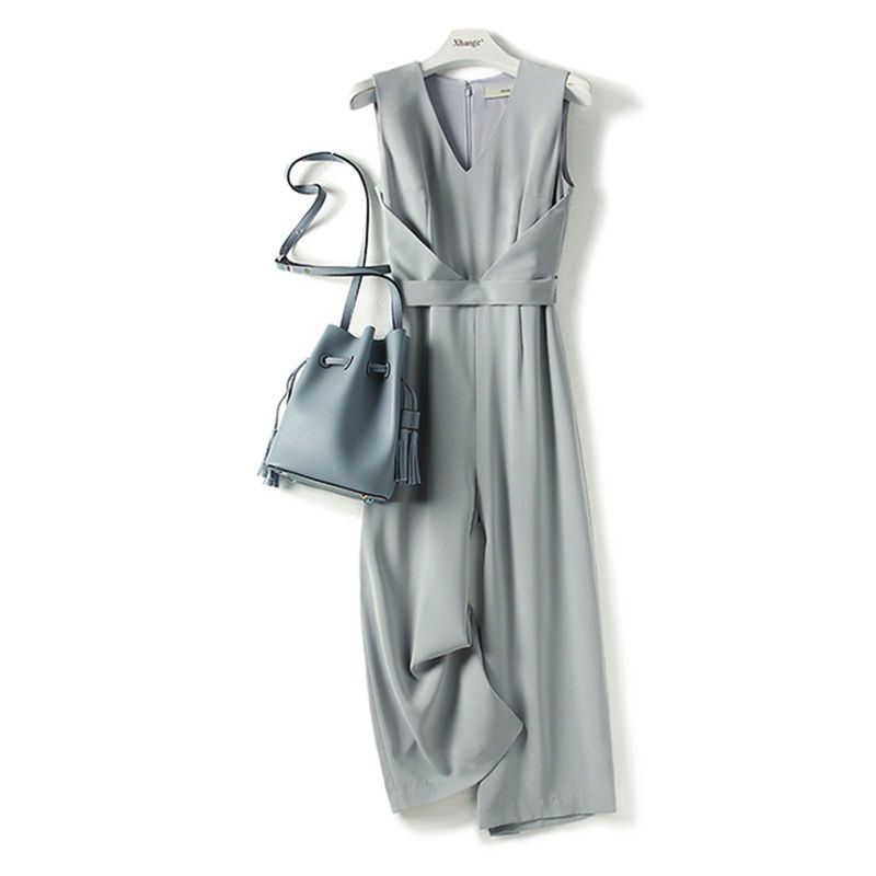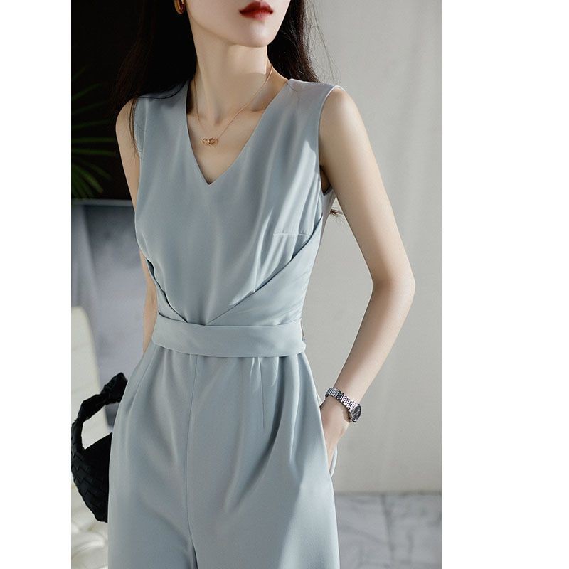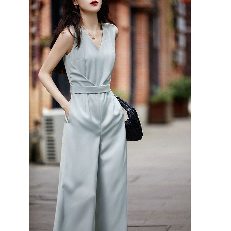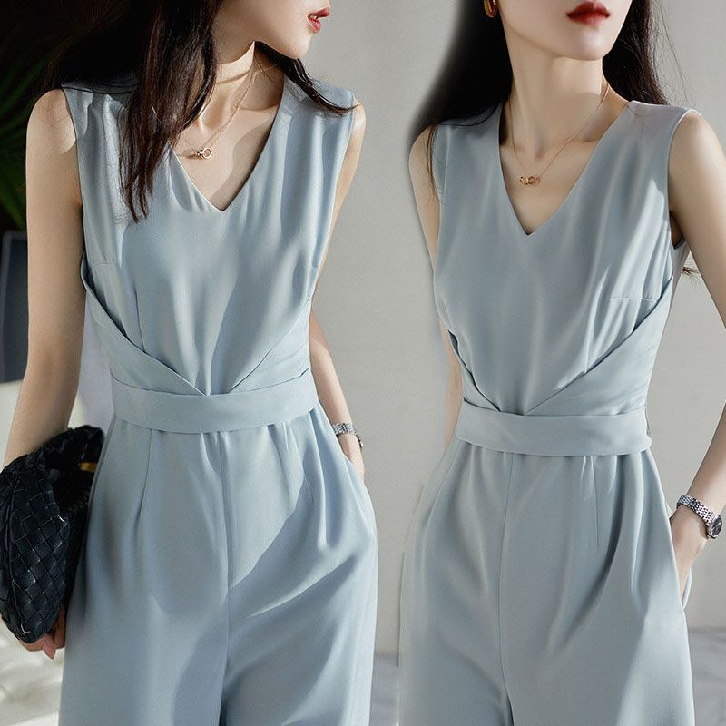 Quần Liền Thân Không Tay Thời Trang Kiểu Pháp Quần Dài Ống Rộng Khí Chất Quý Cô Cao Cấp Tôn Dáng Gầy Mẫu Mỏng Mùa Hè