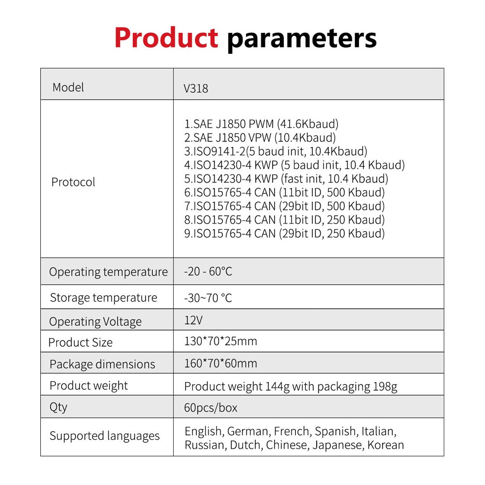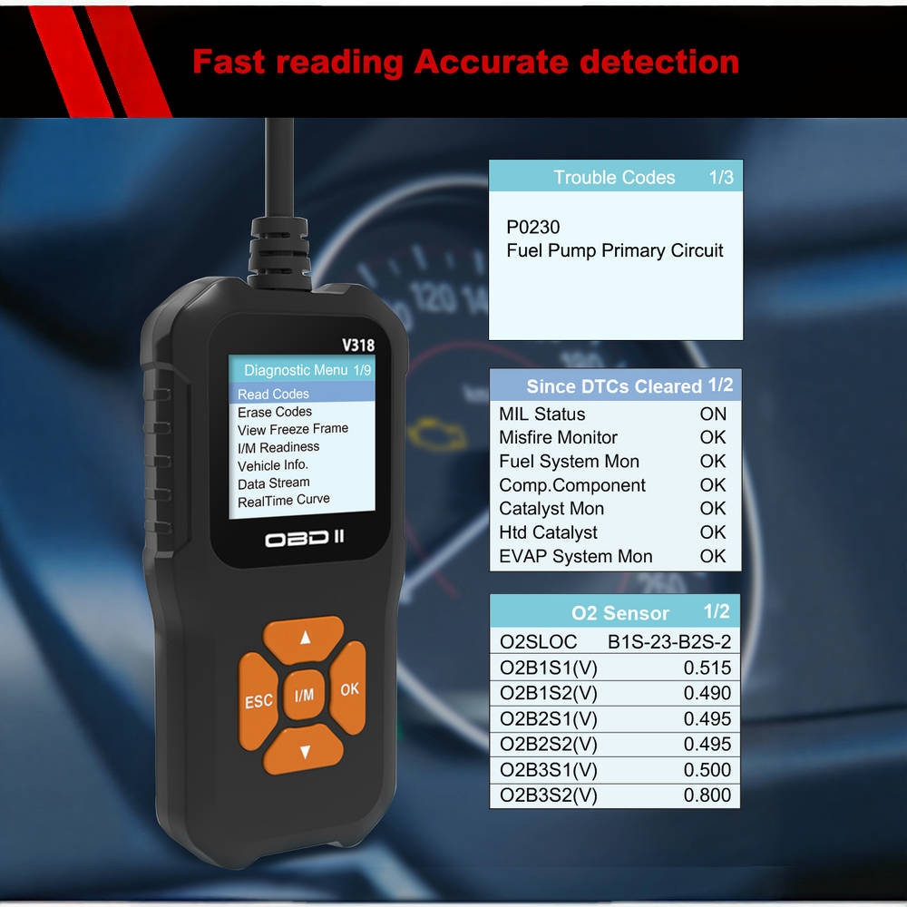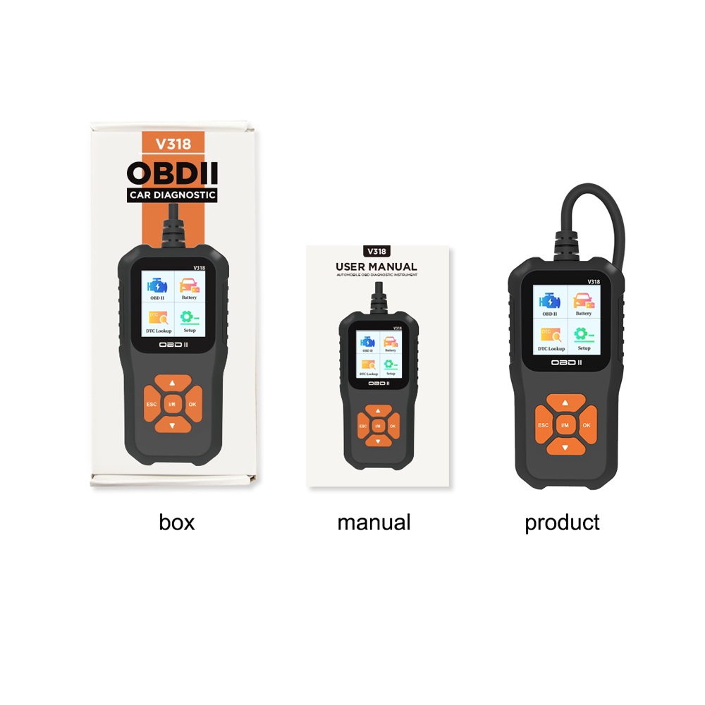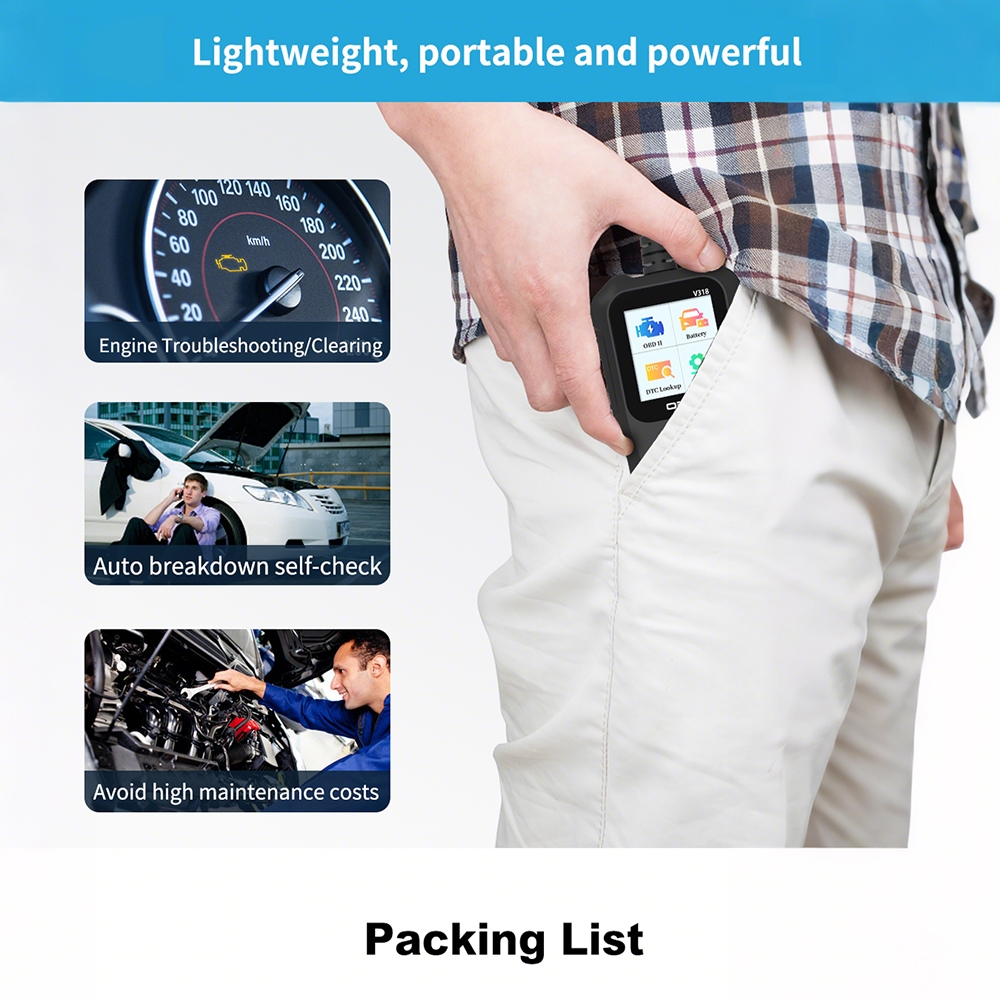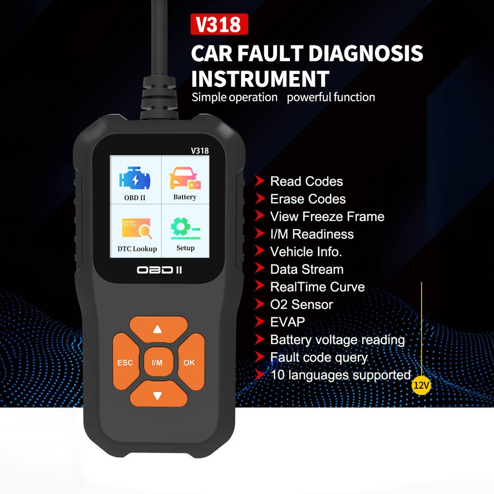 [Nâng cấp 2025] Máy quét OBD2 Công cụ chẩn đoán ô tô chuyên nghiệp - Đầu đọc mã có độ chính xác cao, Màn hình màu 1,8 ", 10 ngôn ngữ, Quét nhanh cho ô tô / SUV / Xe tải (Model V318)