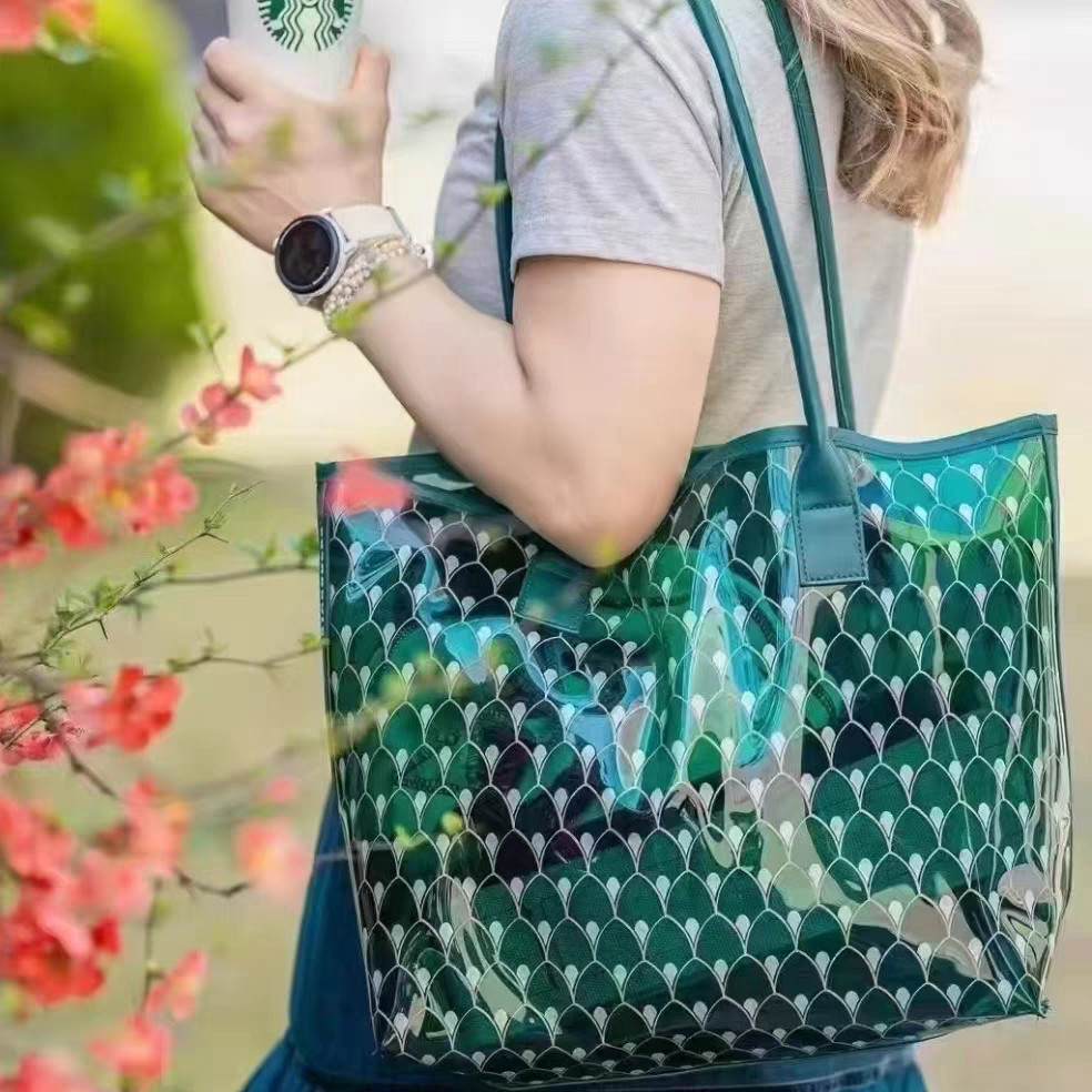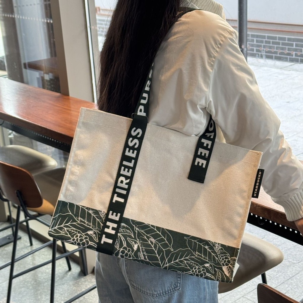 Túi Starbucks Túi Vải Tote Một Vai - Túi Thạch Xanh Dung Tích Lớn Túi Vải Trắng Đi Lại Túi Xách Thời Trang In Chữ Túi Làm Việc