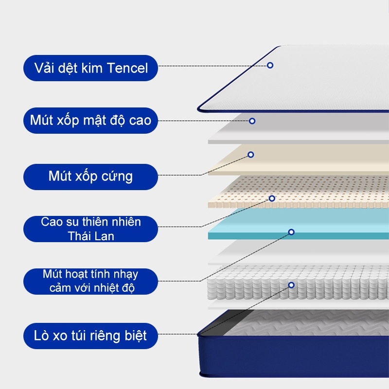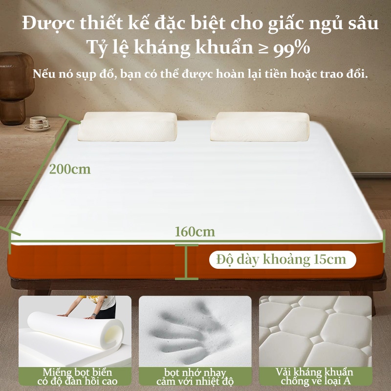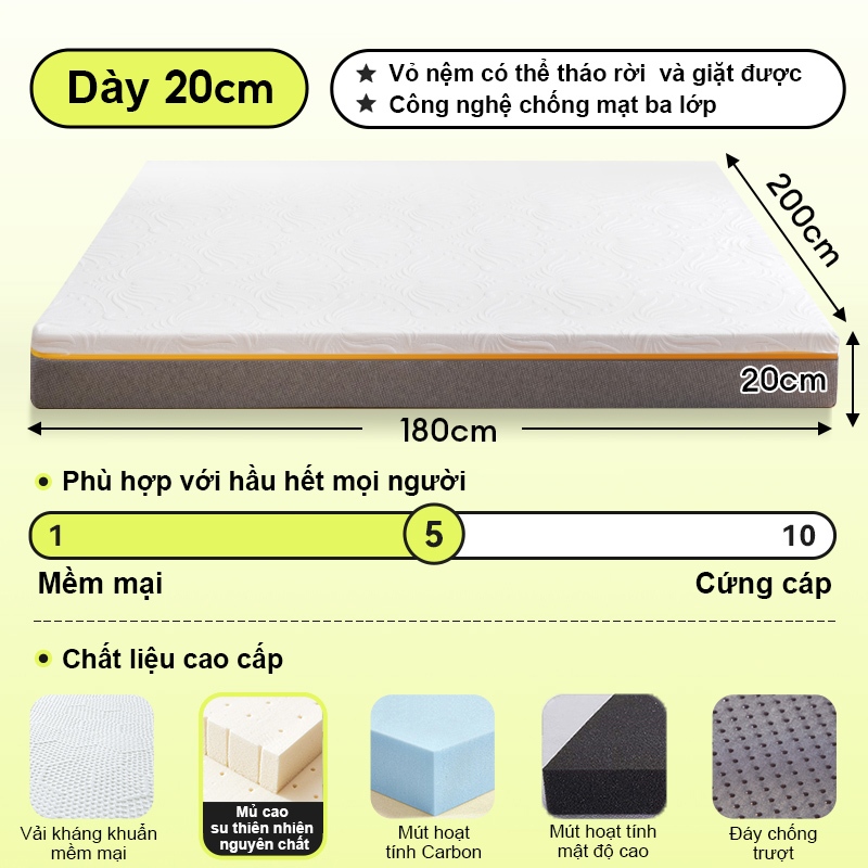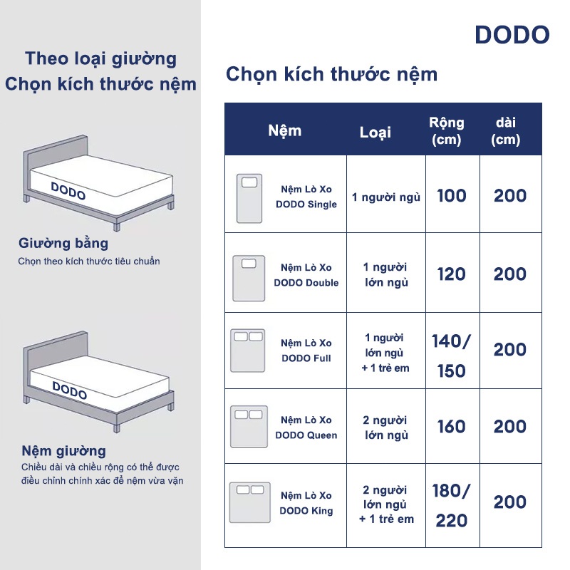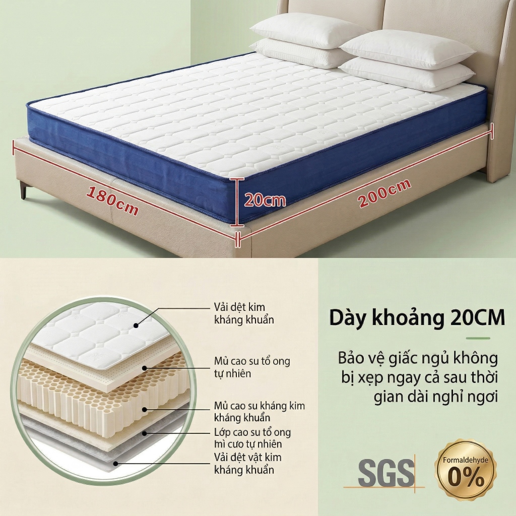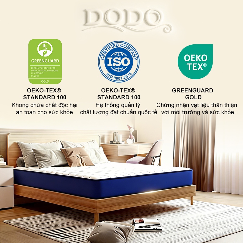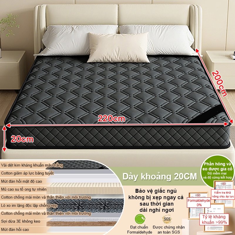 [ Tặng 2 Gối ] DODO Nệm Lò Xo Vua 20cm, Đệm Lò Xo Khách Sạn bảo vệ sống lưng Đóng gói nén 1m6×2m
