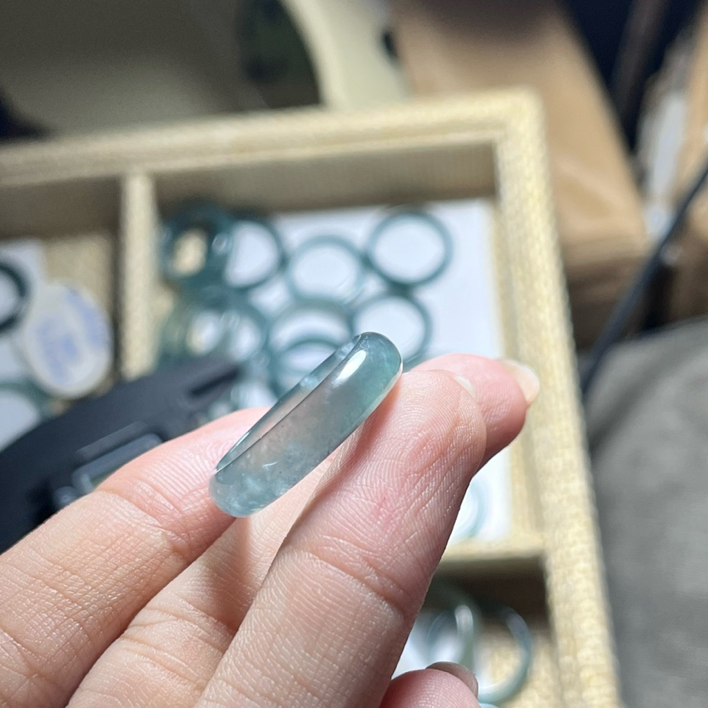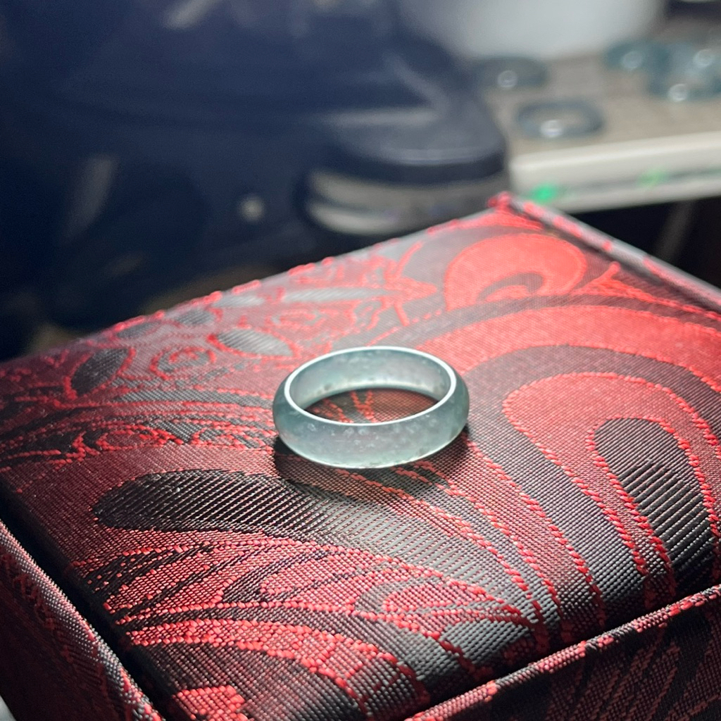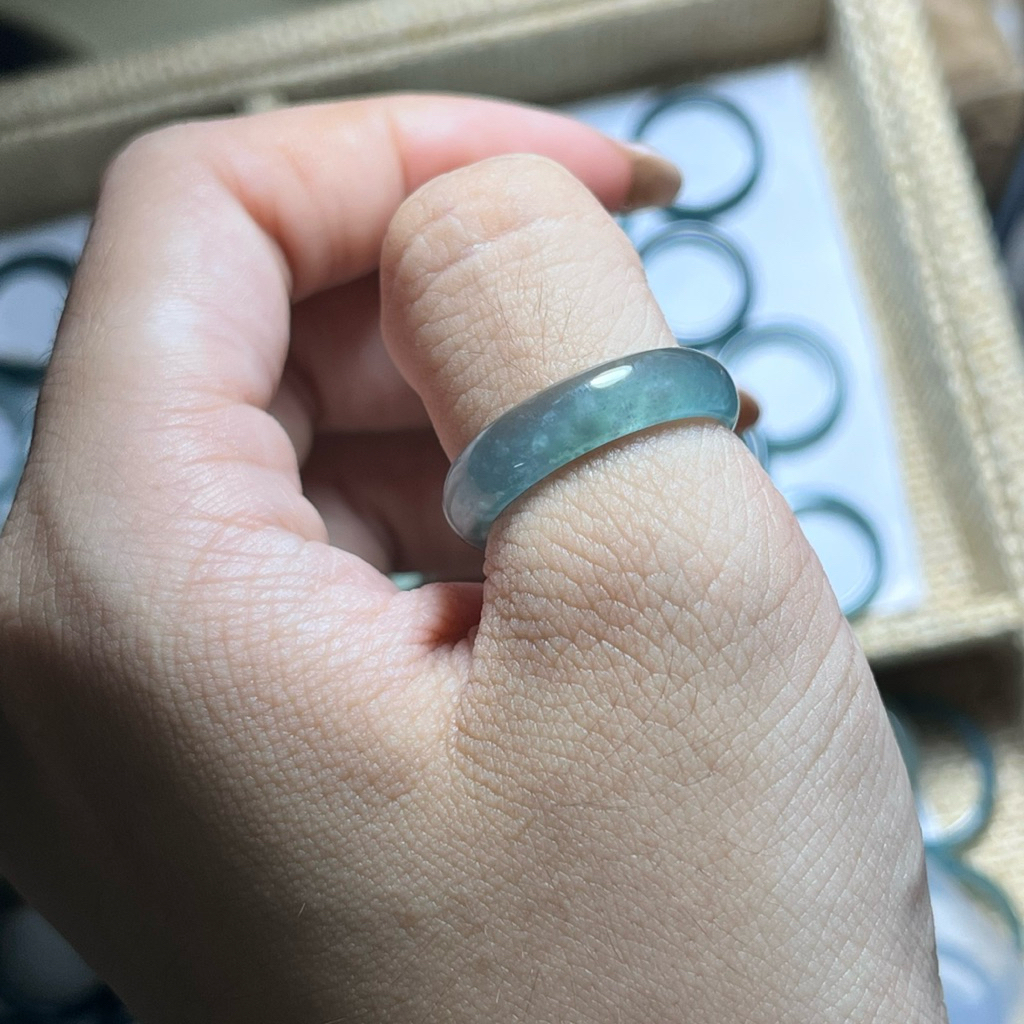 Nhẫn ngọc phỉ thuý Jade A bản dày chất cao băng, quang, ngọc trong mịn, bông tuyết hoa bay trắng 18mm