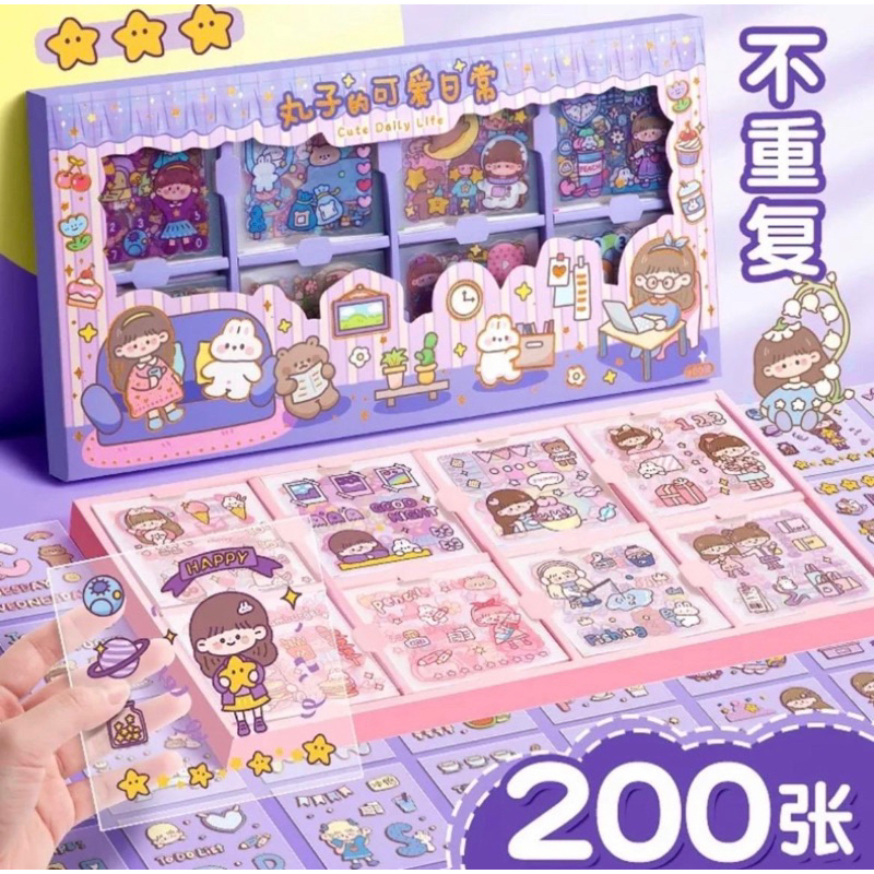 Sticker hộp 200 tấm hình dán dễ thương (PVC)