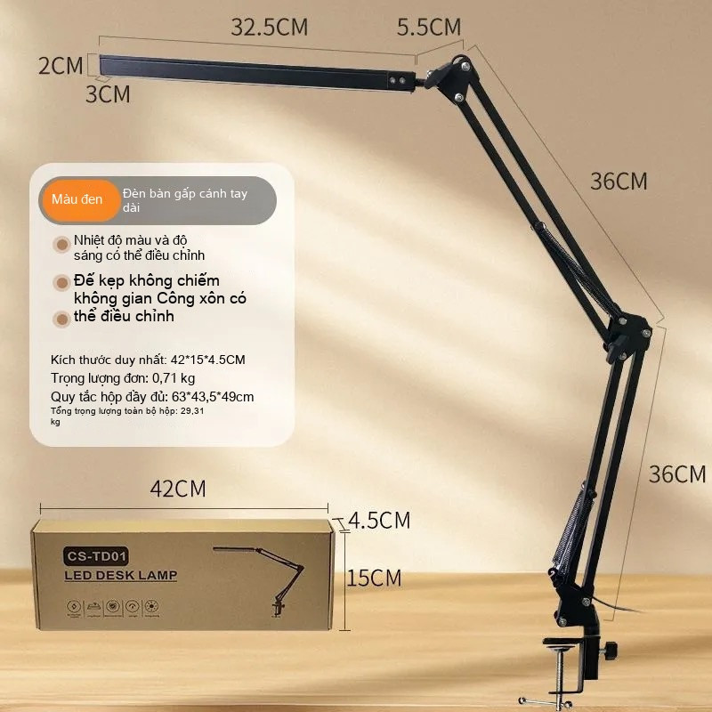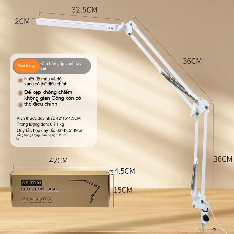 ✨Đèn bàn học MEIT Đèn học gập cánh tay dài kẹp bàn điều chỉnh mọi góc độ 3 chế độ ánh sáng chống cận