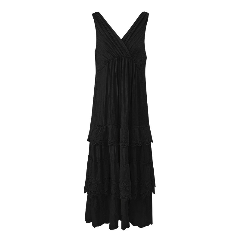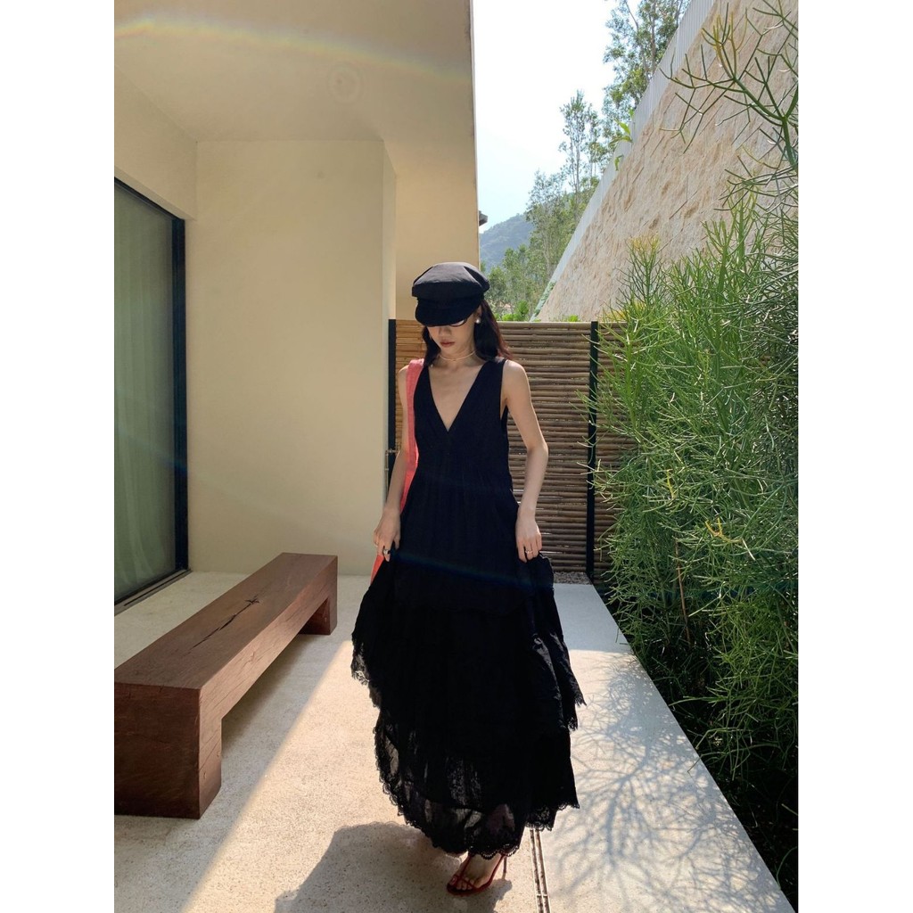 Đầm bánh Pháp mùa hè nóng bỏng cho phụ nữ, đầm không tay cổ V thanh lịch cao cấp