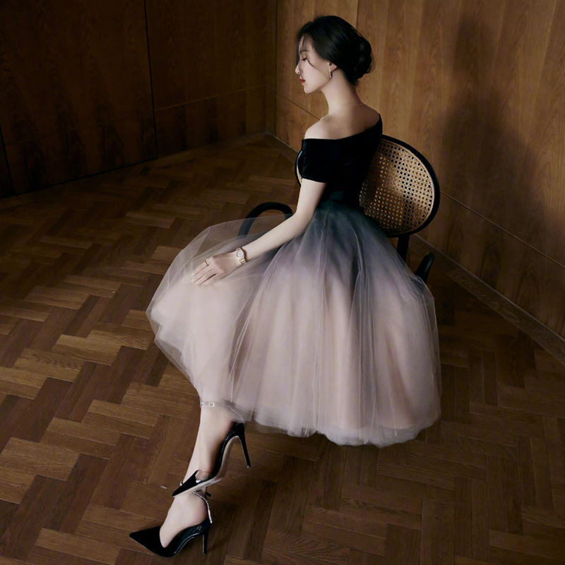 Váy Nhỏ Trễ Vai Váy Tiên Nữ Khí Chất Mẫu Hè Váy Dạ Hội Đơn Giản Dự Tiệc Dáng Dài Vừa