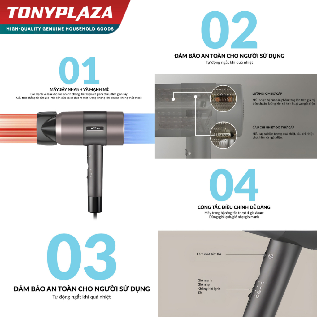 Máy sấy tóc Haatz CIM908, sấy tóc mạnh mẽ 2200W, chăm sóc tóc toàn diện, sấy 2 chiều nóng lạnh