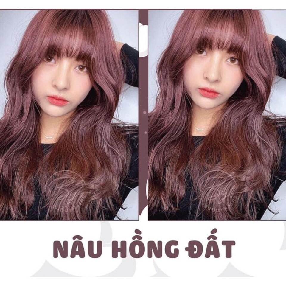 Combo nhuộm nâu hồng đất kèm oxi trợ nhuộm và găng tay nên từ nền đen tự nhiên