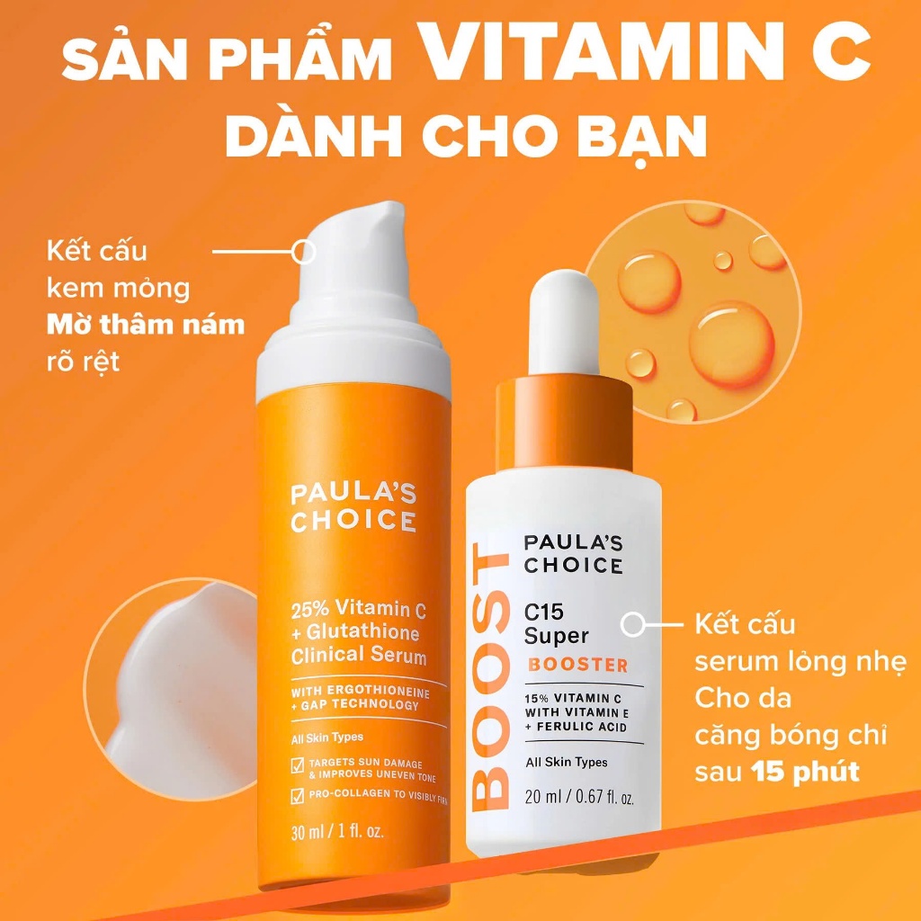 [HÀNG CTY] Tinh chất làm sáng da, mờ thâm Paula's Choice 25% Vitamin C + Glutathione Clinical Serum 30ml Mã 1490