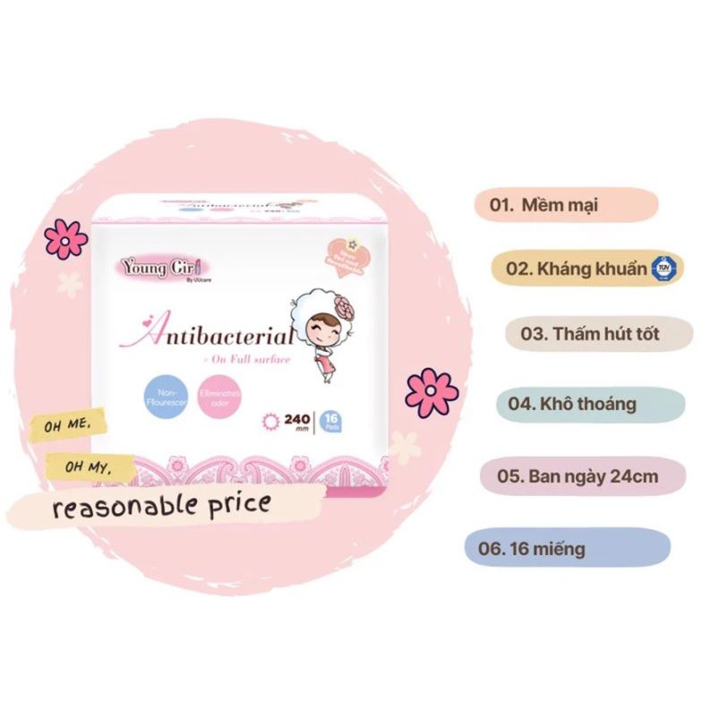 Băng Vệ Sinh Siêu Thấm Ban Ngày UUcare Young Girl Series 24cm [che tên sản phẩm khi giao hàng]