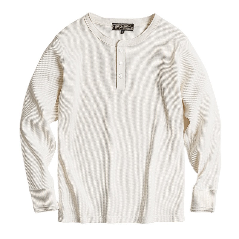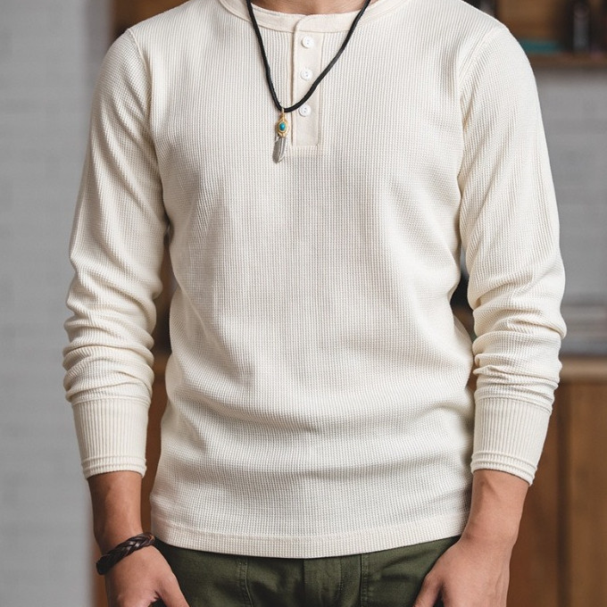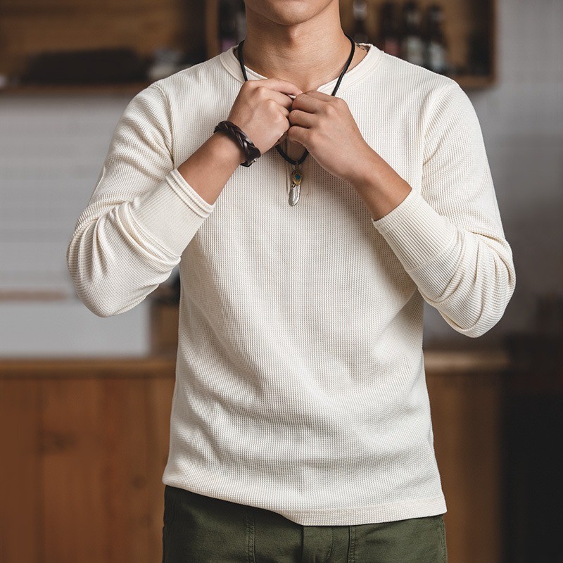Áo nam cổ điển MADEN | Áo sơ mi Henley Waffle & Áo Hoodie dài tay màu trơn Amikaji