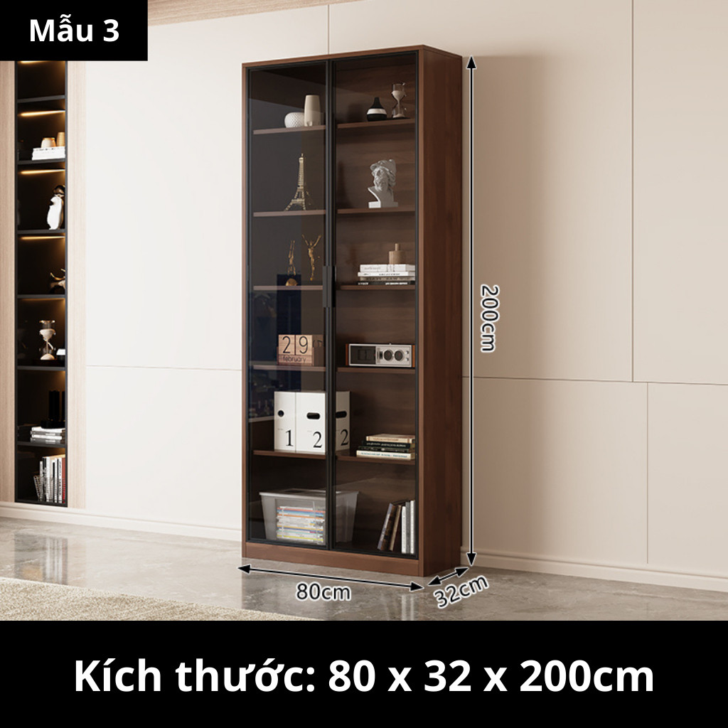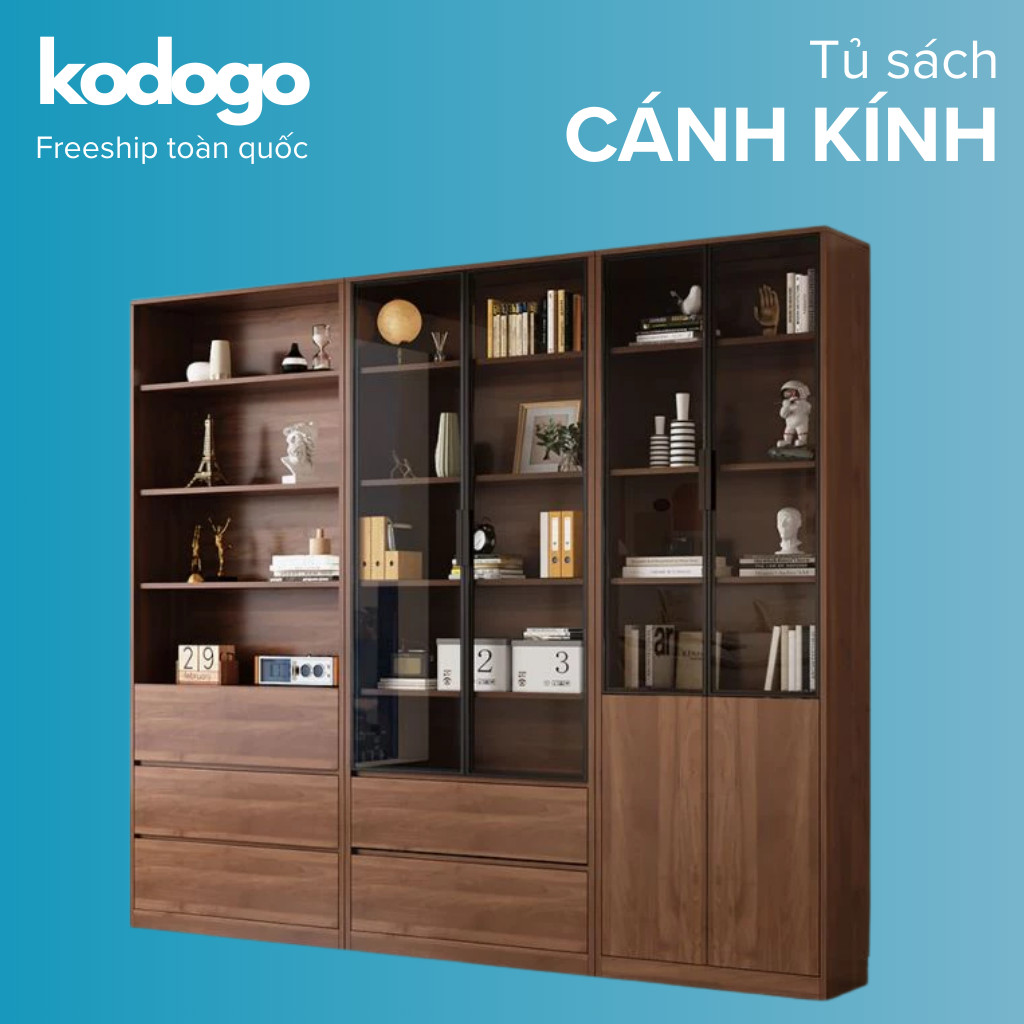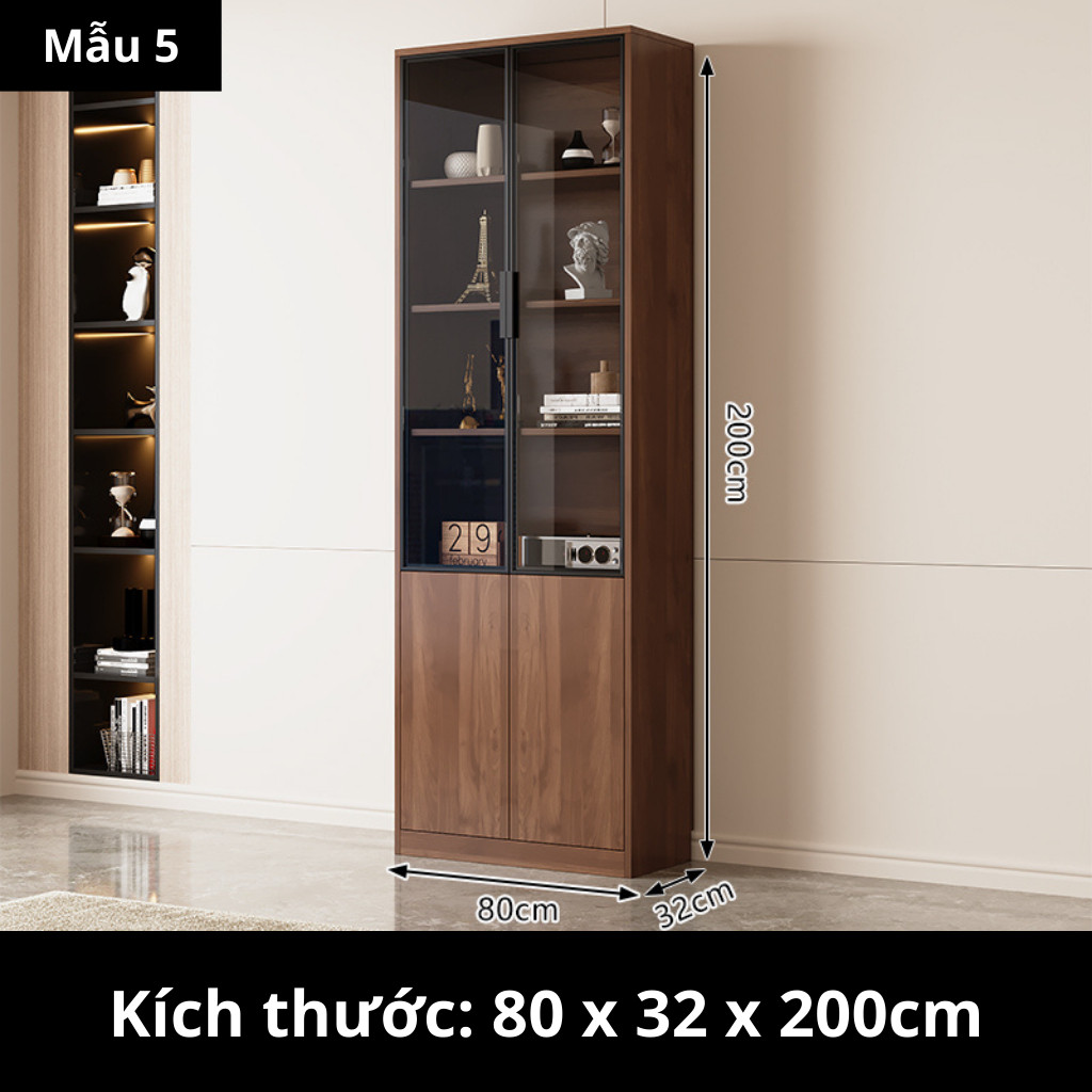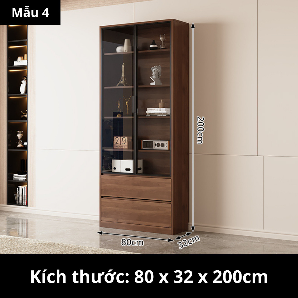 Kodogo TK004, Tủ Sách Cánh Kính 160x32x200cm Trang Trí Phòng Khách, Phòng Làm Việc