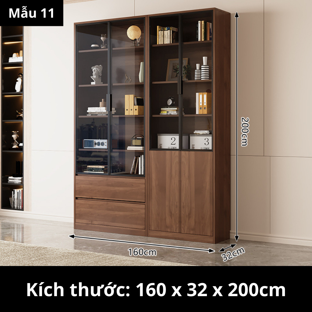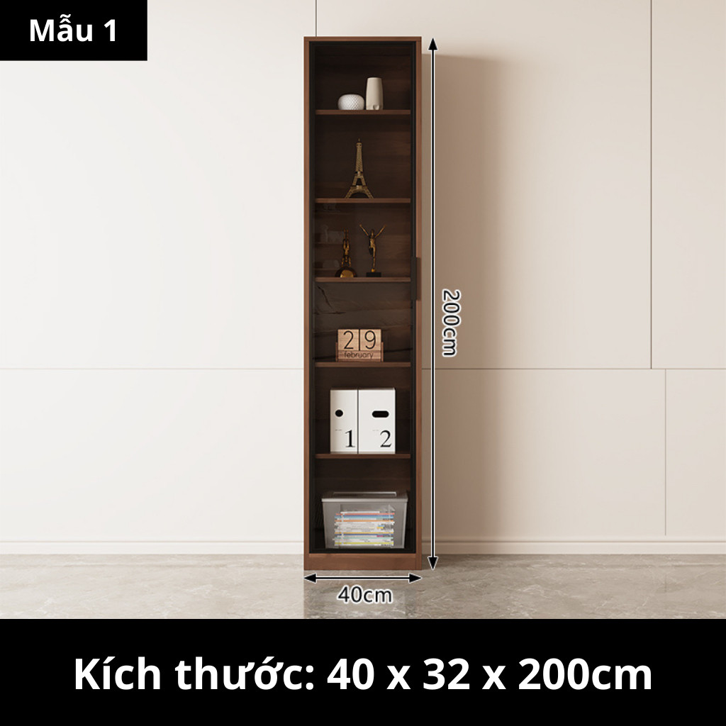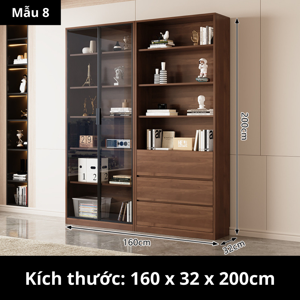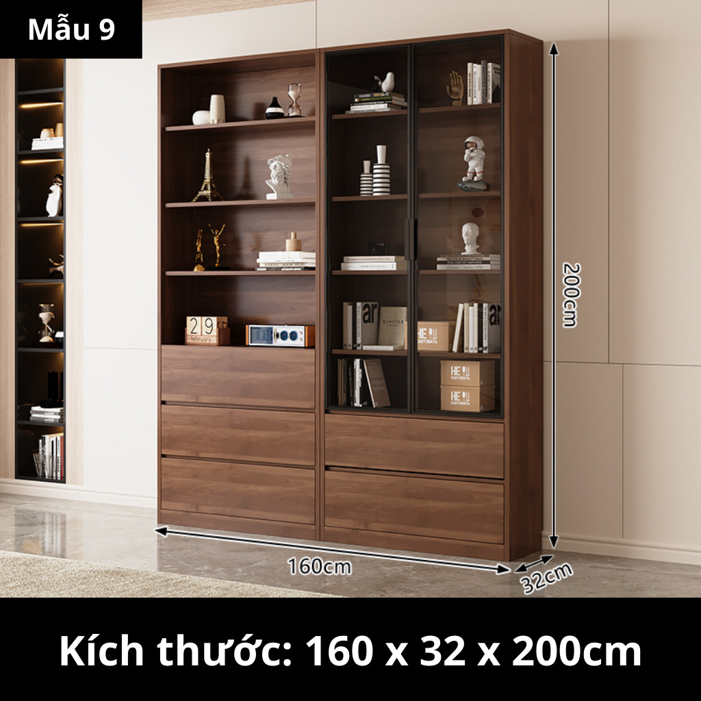 Kodogo TK004, Tủ Sách Cánh Kính 160x32x200cm Trang Trí Phòng Khách, Phòng Làm Việc