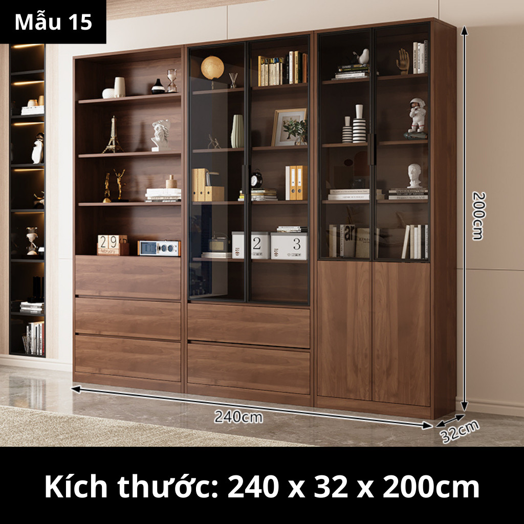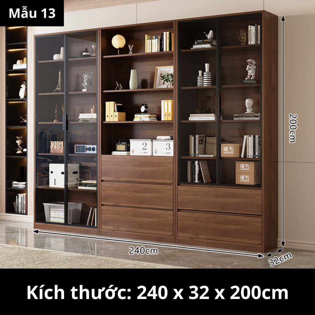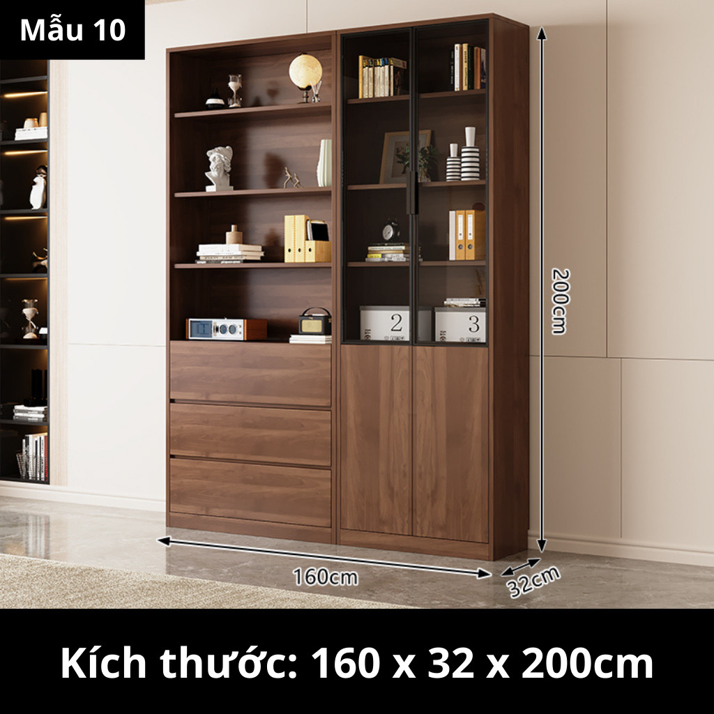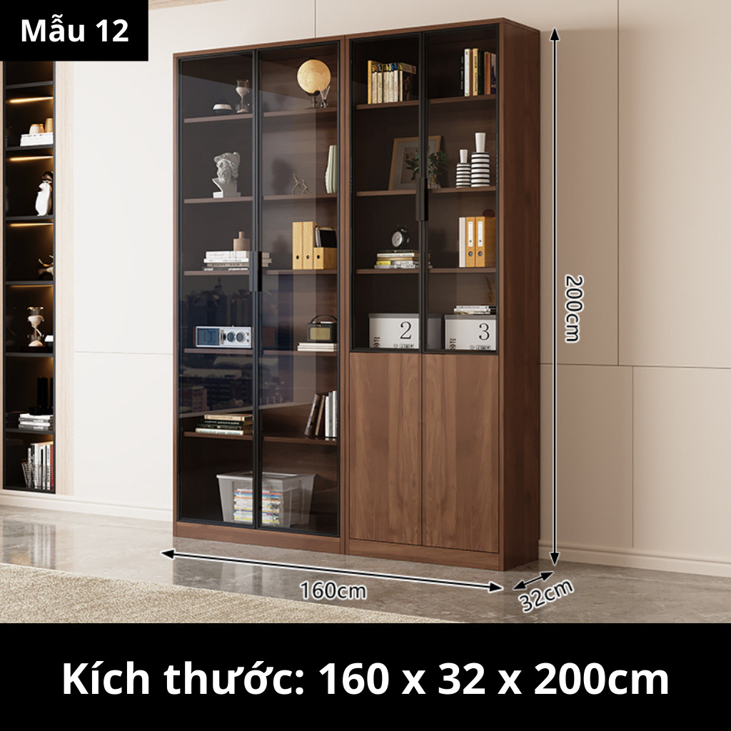 Kodogo TK004, Tủ Sách Cánh Kính 160x32x200cm Trang Trí Phòng Khách, Phòng Làm Việc