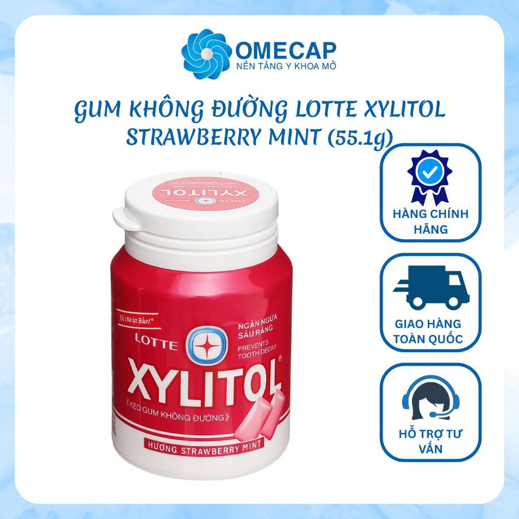 Kẹo gum không đường Lotte Xylitol hương strawberry mint - ngăn ngừa sâu răng - hũ 55.1g - Omecap