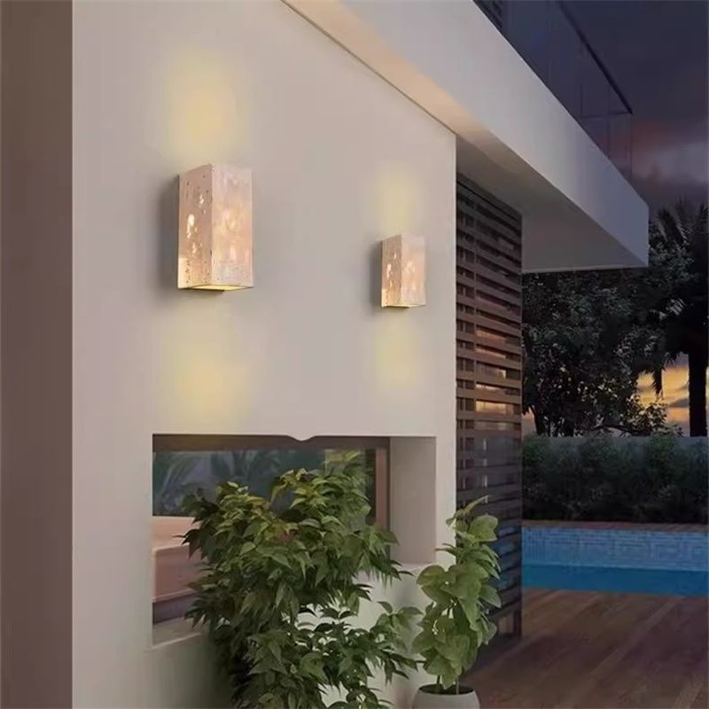 Đèn tường đá Travertine vàng cho sân nhà Biệt thự nghỉ dưỡng cảnh quan, tường vườn, nghệ thuật rửa ngoài trời