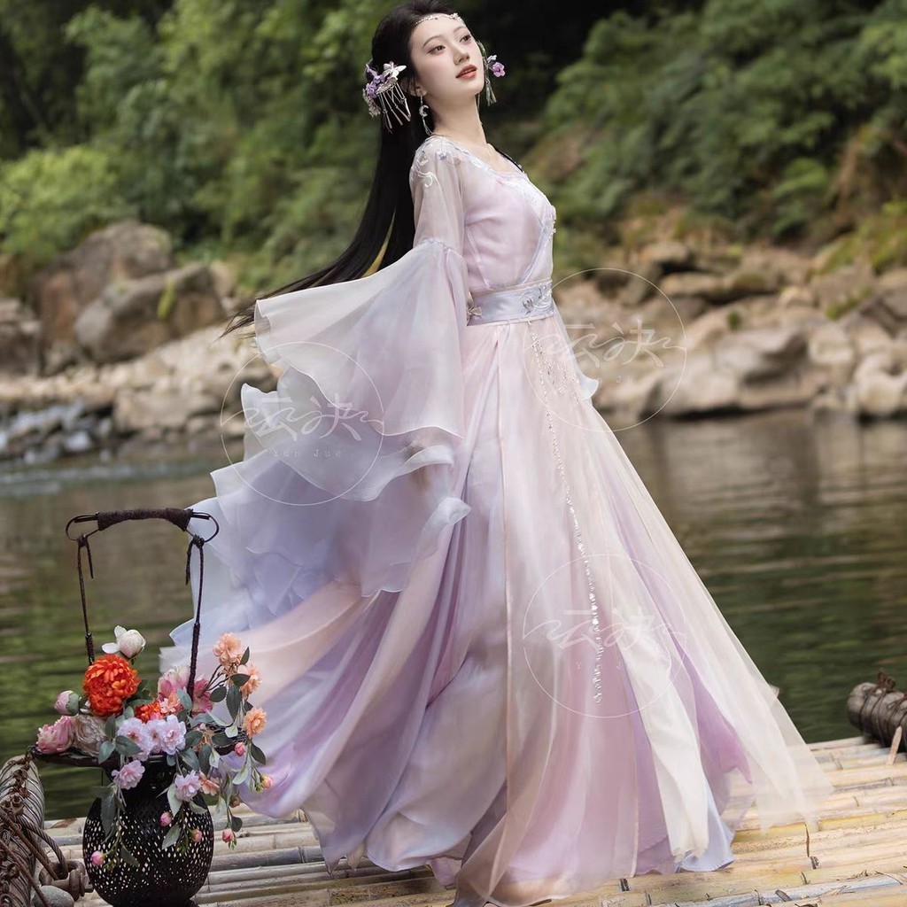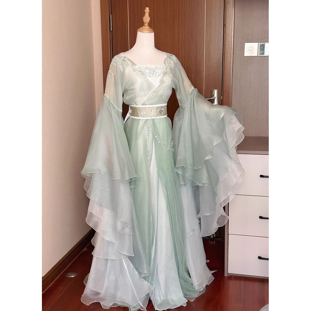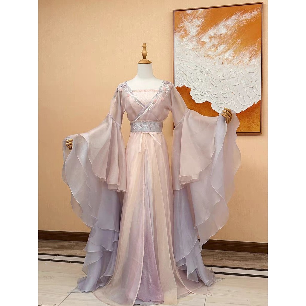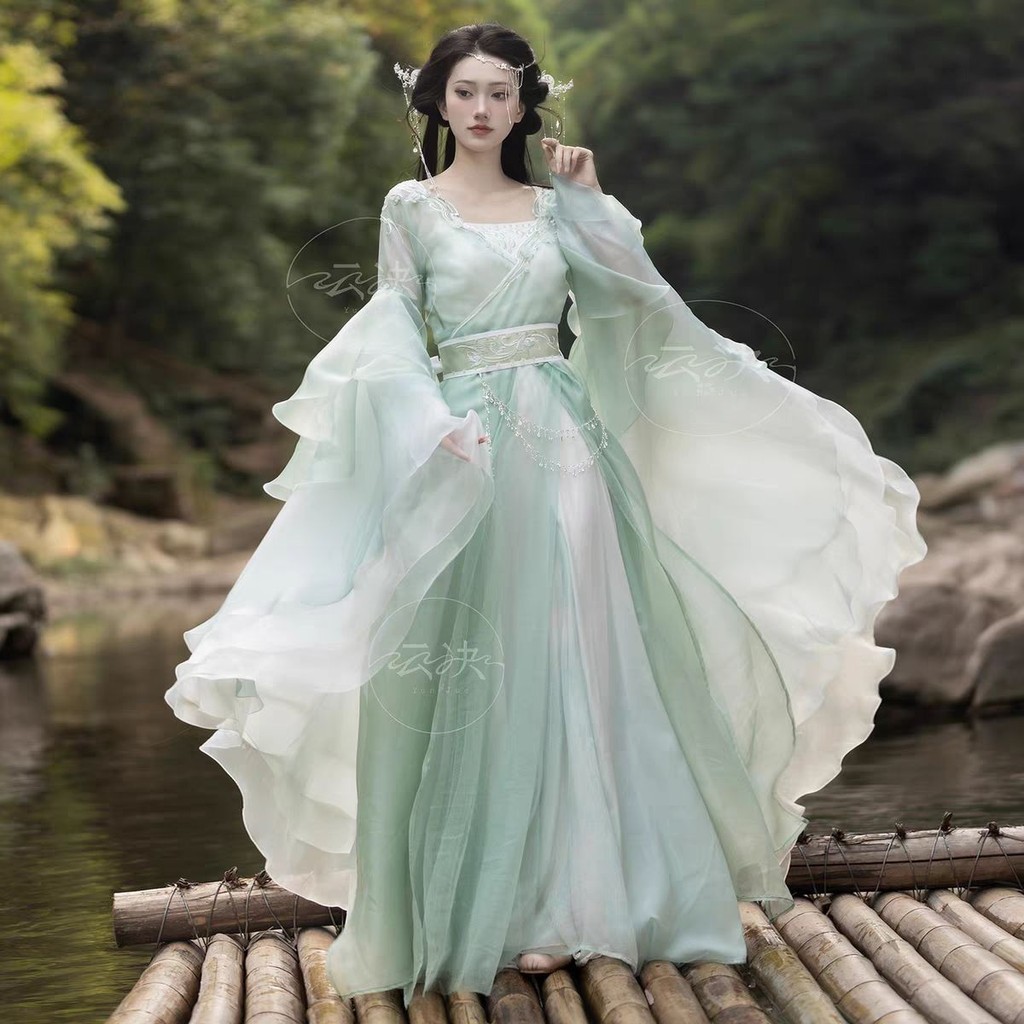 [GIÁ SỐC] Quyết định trên đám mây【Yun Ling】Phong cách tiên nữ, váy hoa nhỏ, cổ áo không đều, váy xế