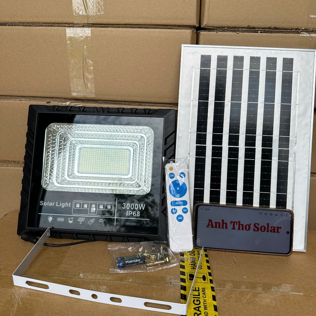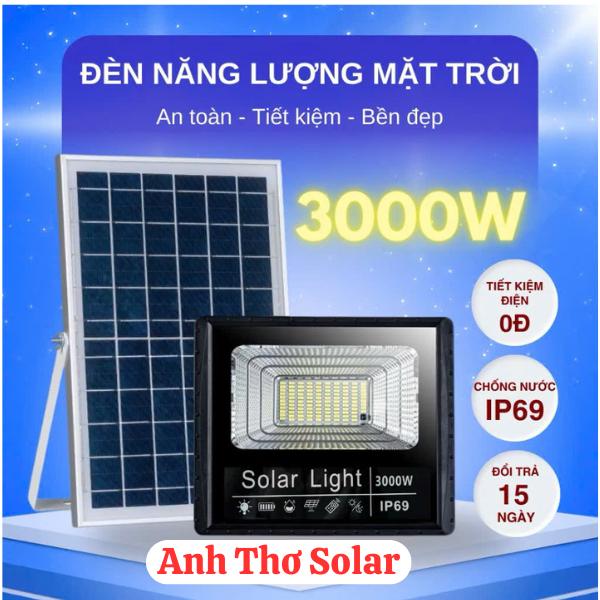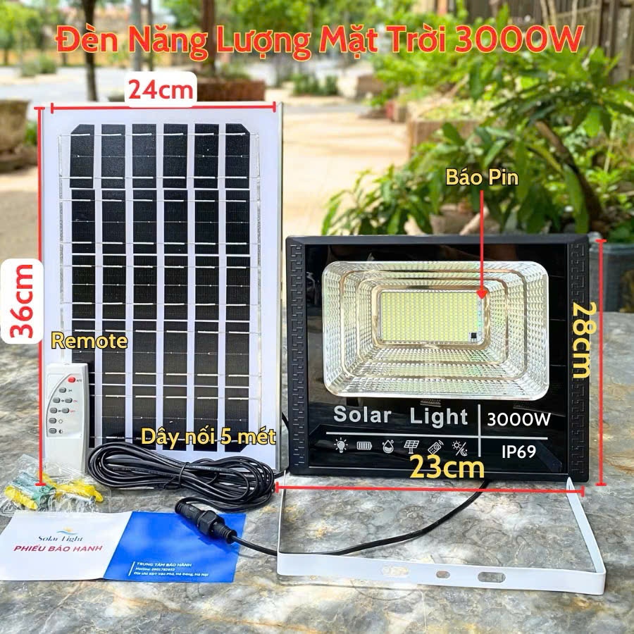 Đèn Năng Lượng Mặt Trời Công Suất 3000W, Chống Nước IP69 Có Điều Khiển Đi Kèm- Bảo Hành 24 Tháng