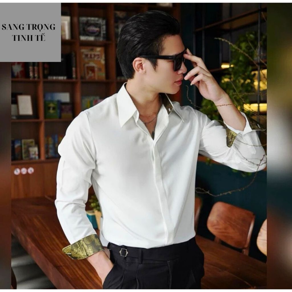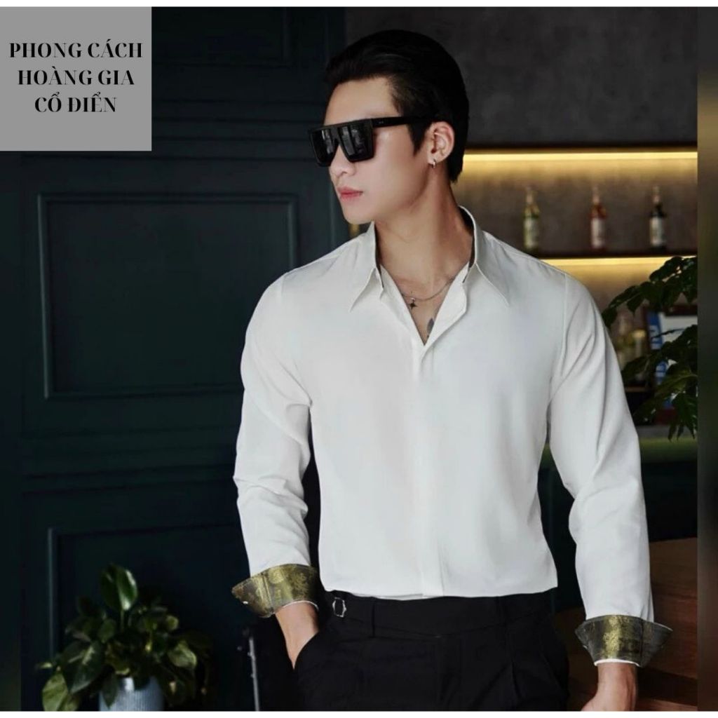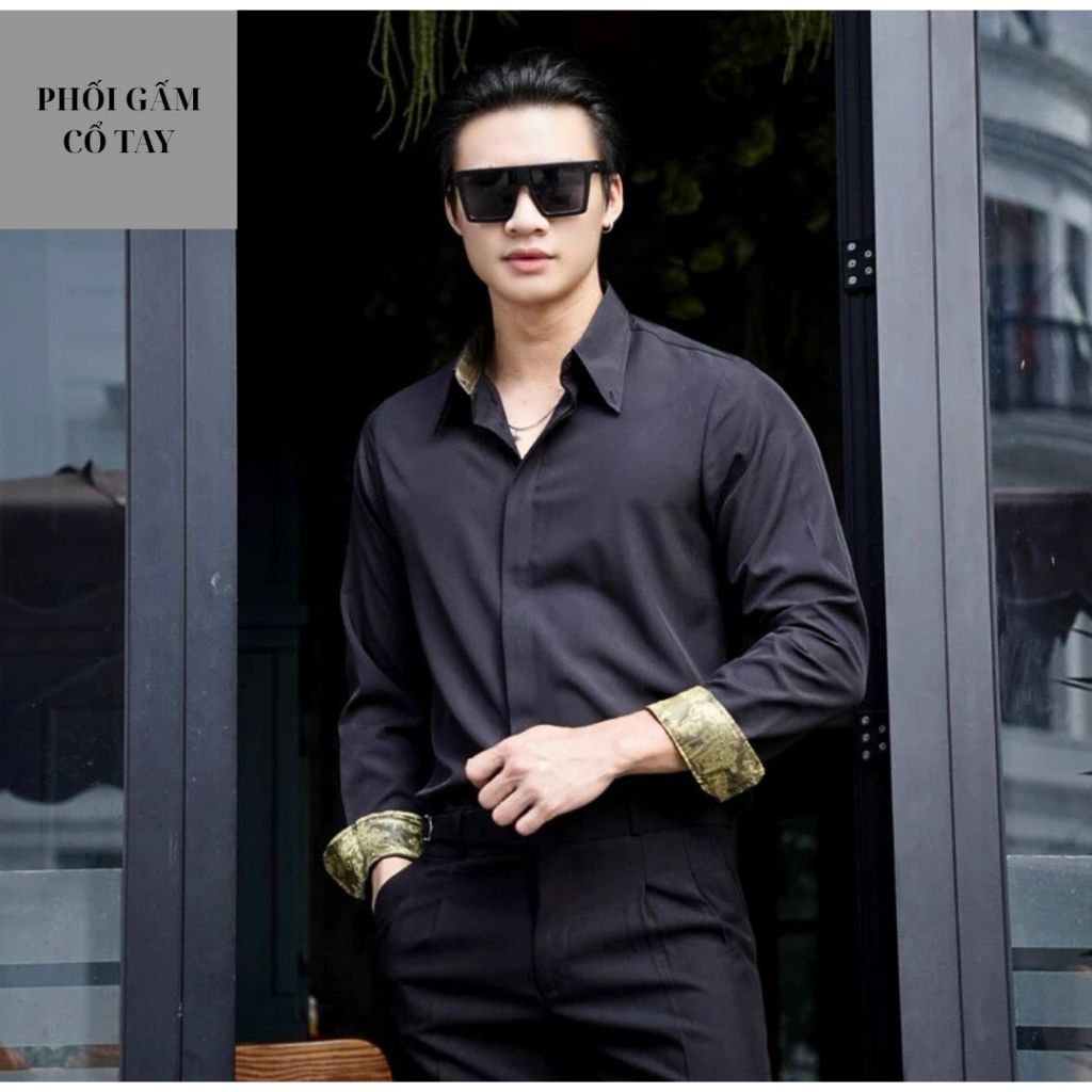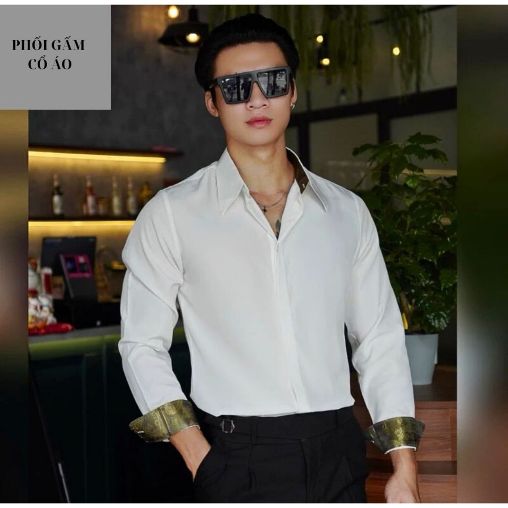 Sơ Mi Nam Cổ Tay Lót Gấm Hoàng Gia Cổ Điển Thương Hiệu SHOPMENSTORE,Sơ Mi Nam Phối Gấm Sang Trọng