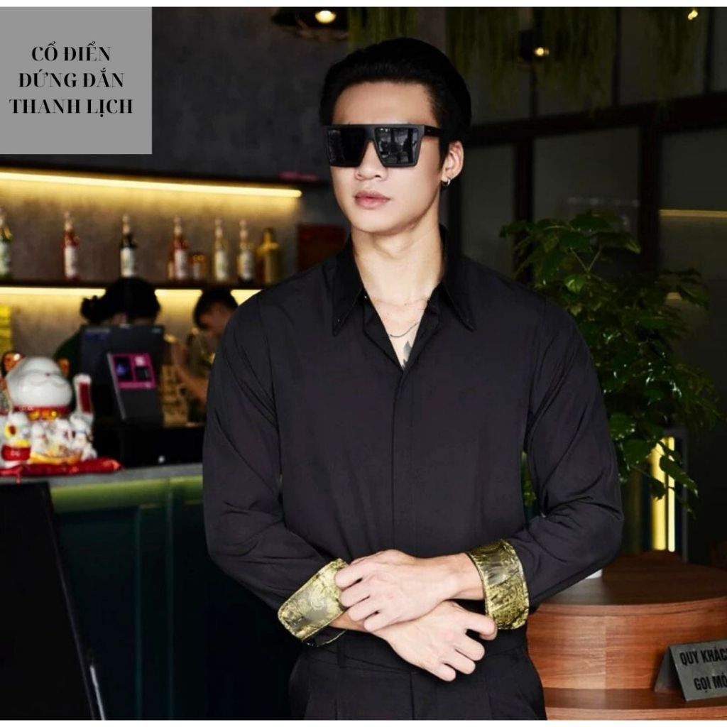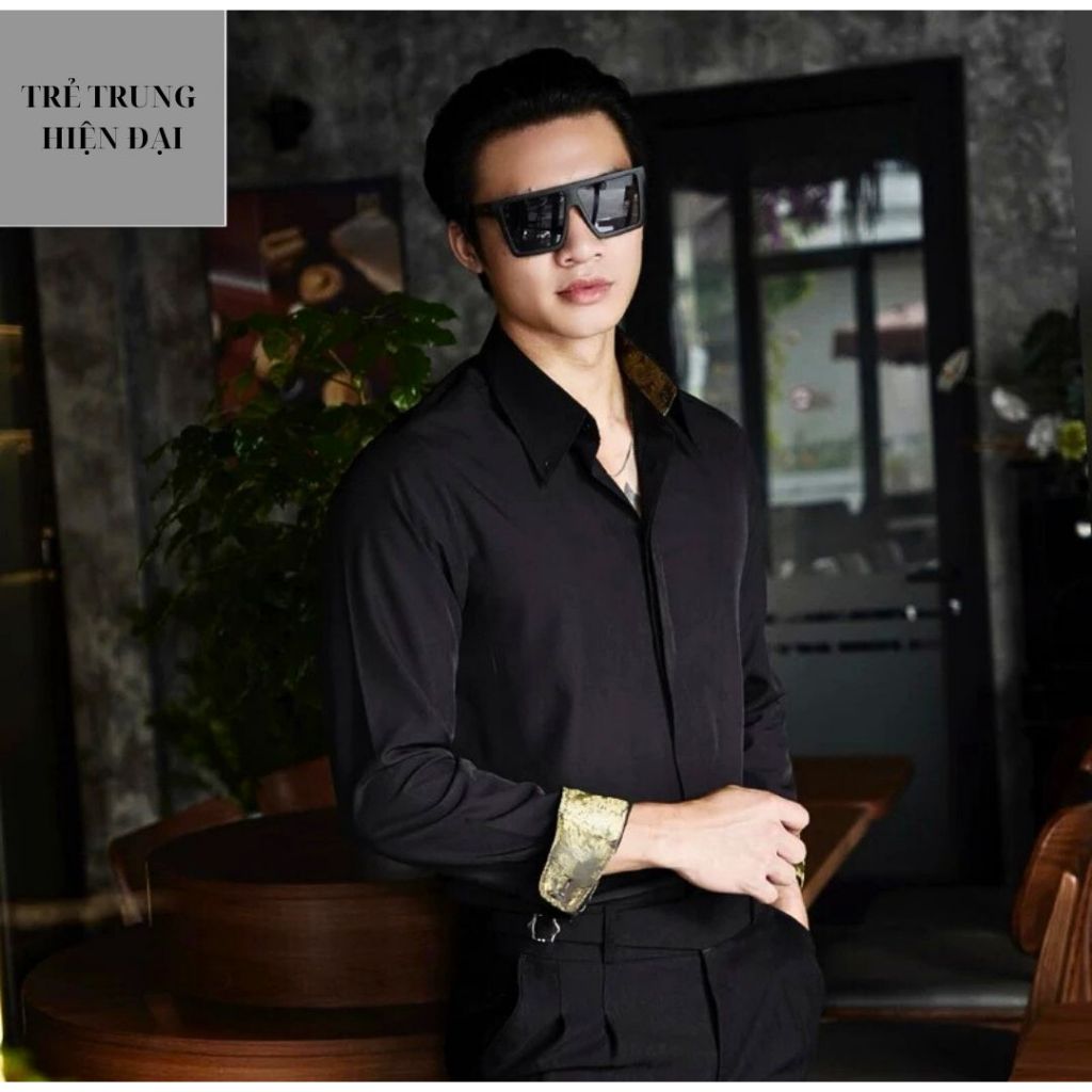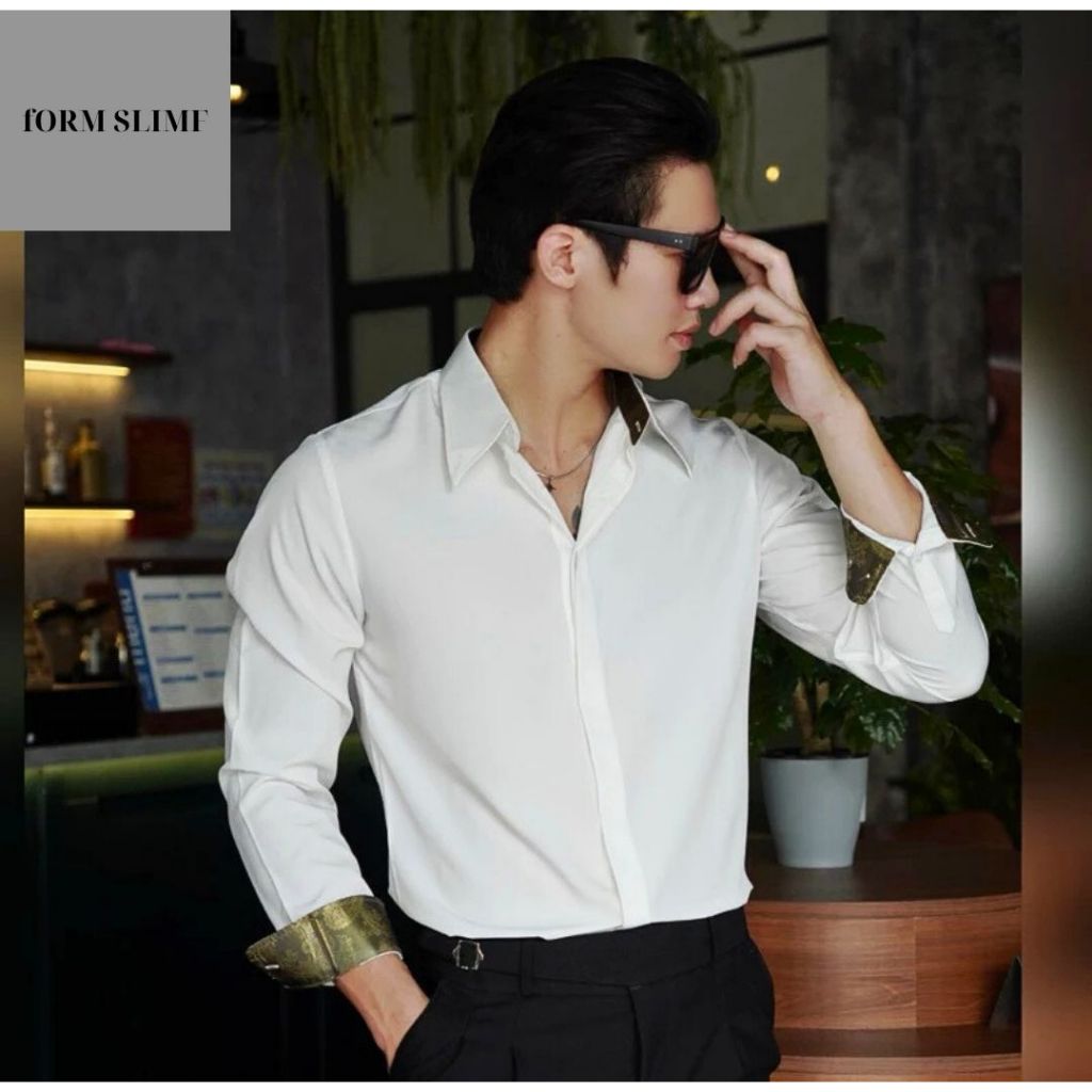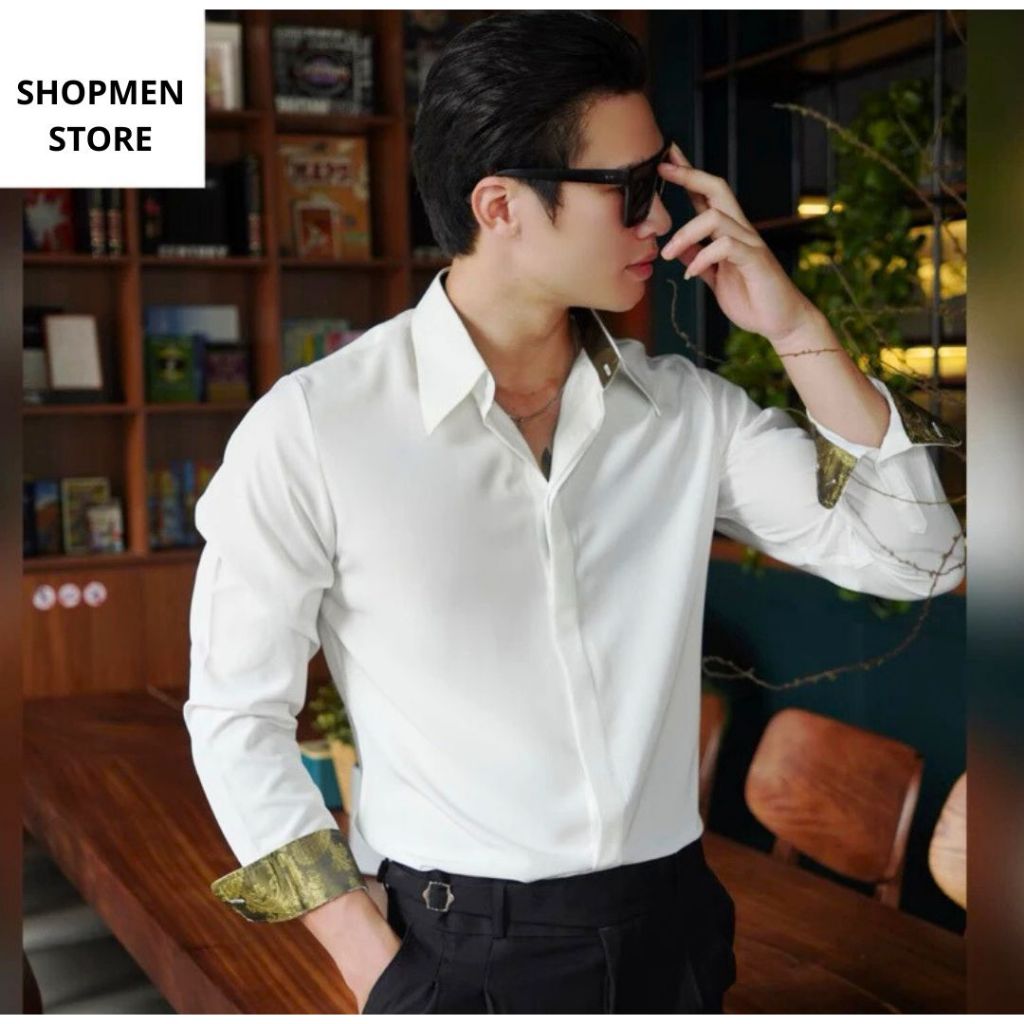 Sơ Mi Nam Cổ Tay Lót Gấm Hoàng Gia Cổ Điển Thương Hiệu SHOPMENSTORE,Sơ Mi Nam Phối Gấm Sang Trọng