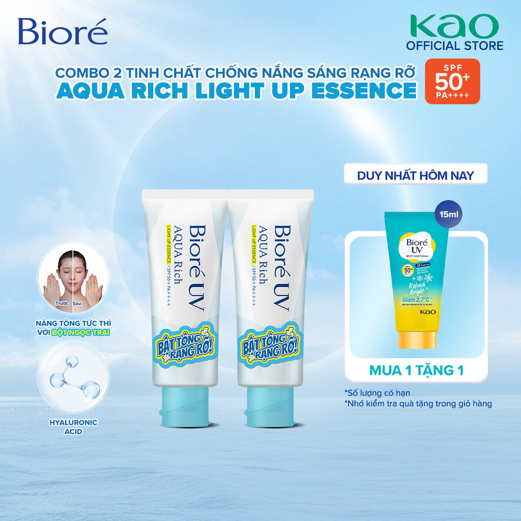 Combo 2 Biore Tinh Chất Chống Nắng Sáng Rạng Rỡ Aqua Rich Light Up Essence SPF50+/PA++++ 70g