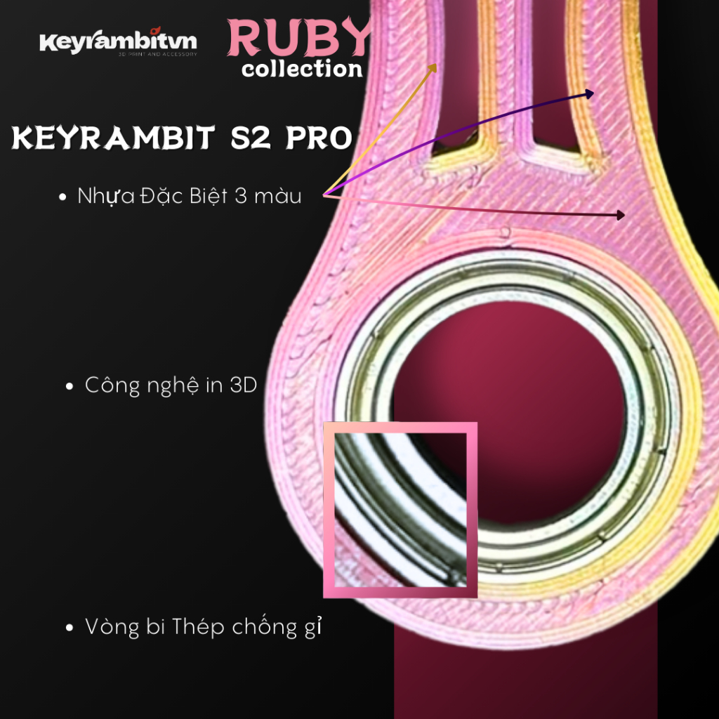 [LIVE] Móc Khóa Xoay - Keyrambit S2 - Vòng Bi Thép Nhật - In 3D - Phiên Bản Hồng Ngọc
