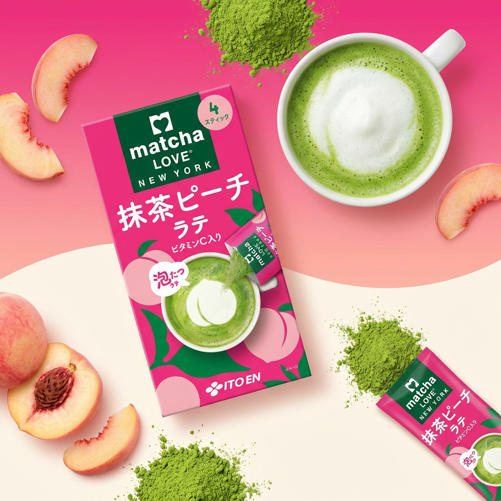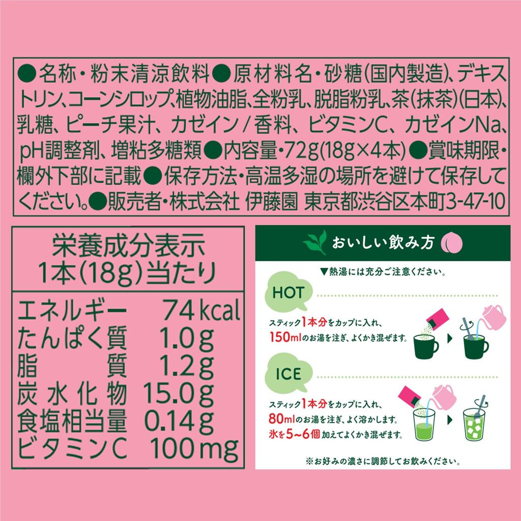 Itoen Matcha Peach Latte Stick Powder - 18g x 4 Pack - Instant Mix