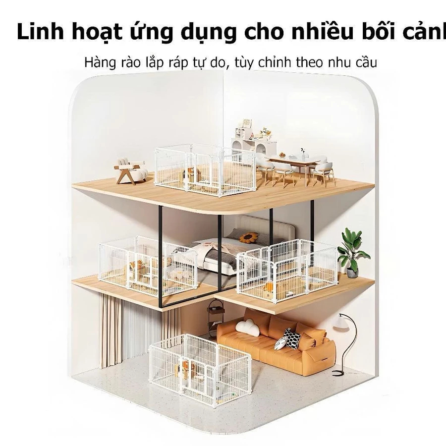 Chuồng quây ghép mở rộng nan ống sơn tĩnh điện, dễ tháo lắp, có thể nối dài vô hạn cho chó Corgi, Shiba, Poodle...