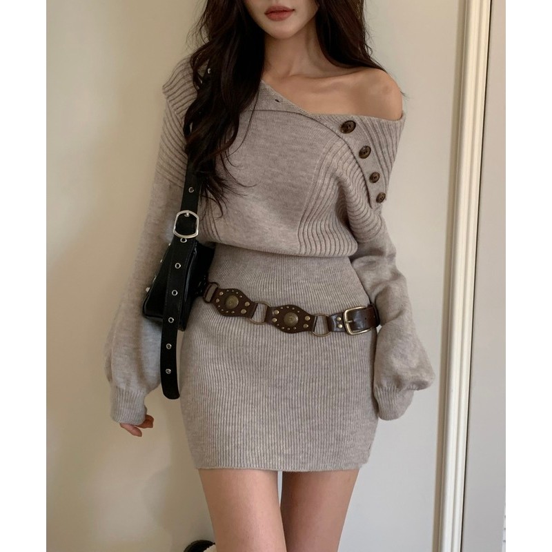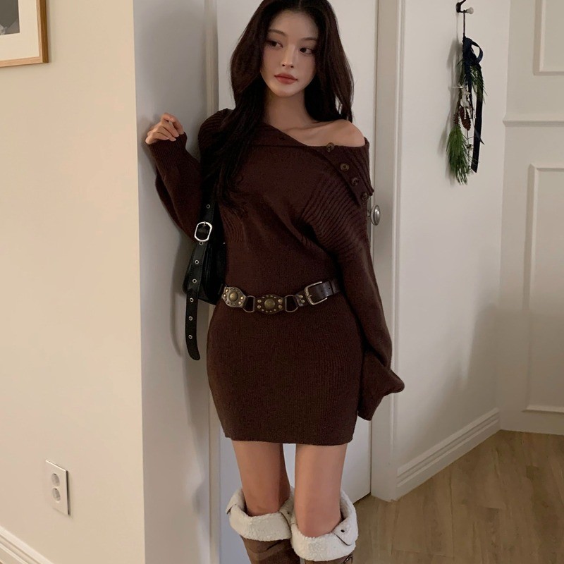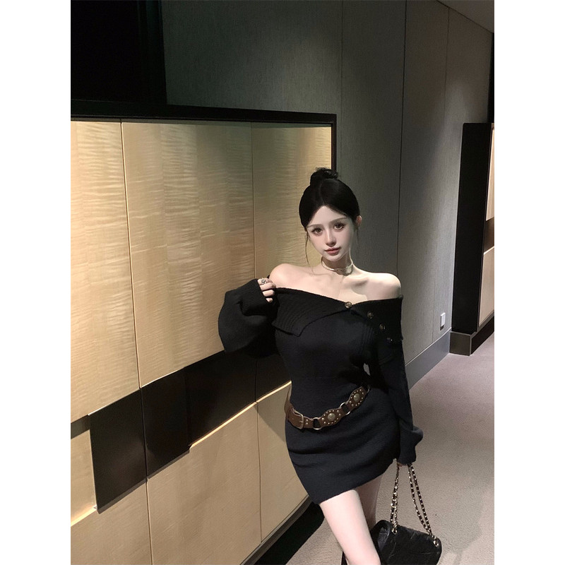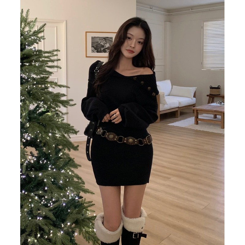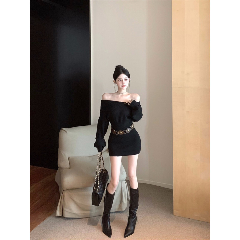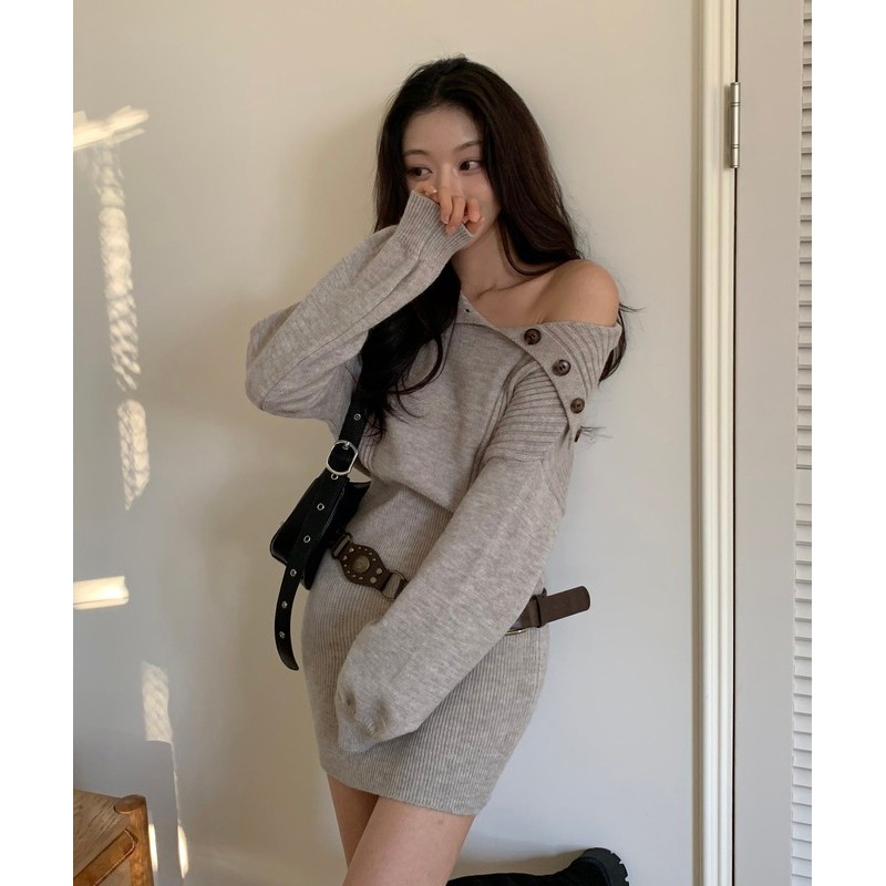 Váy body cổ trễ vai sang trọng kèm thắt lưng