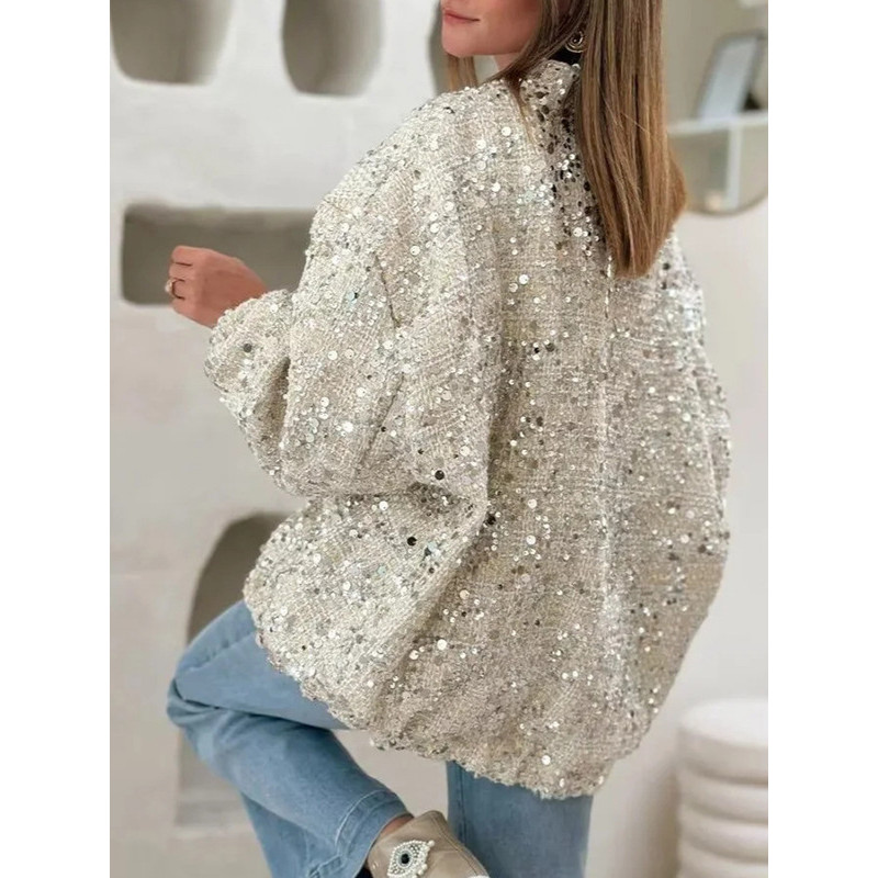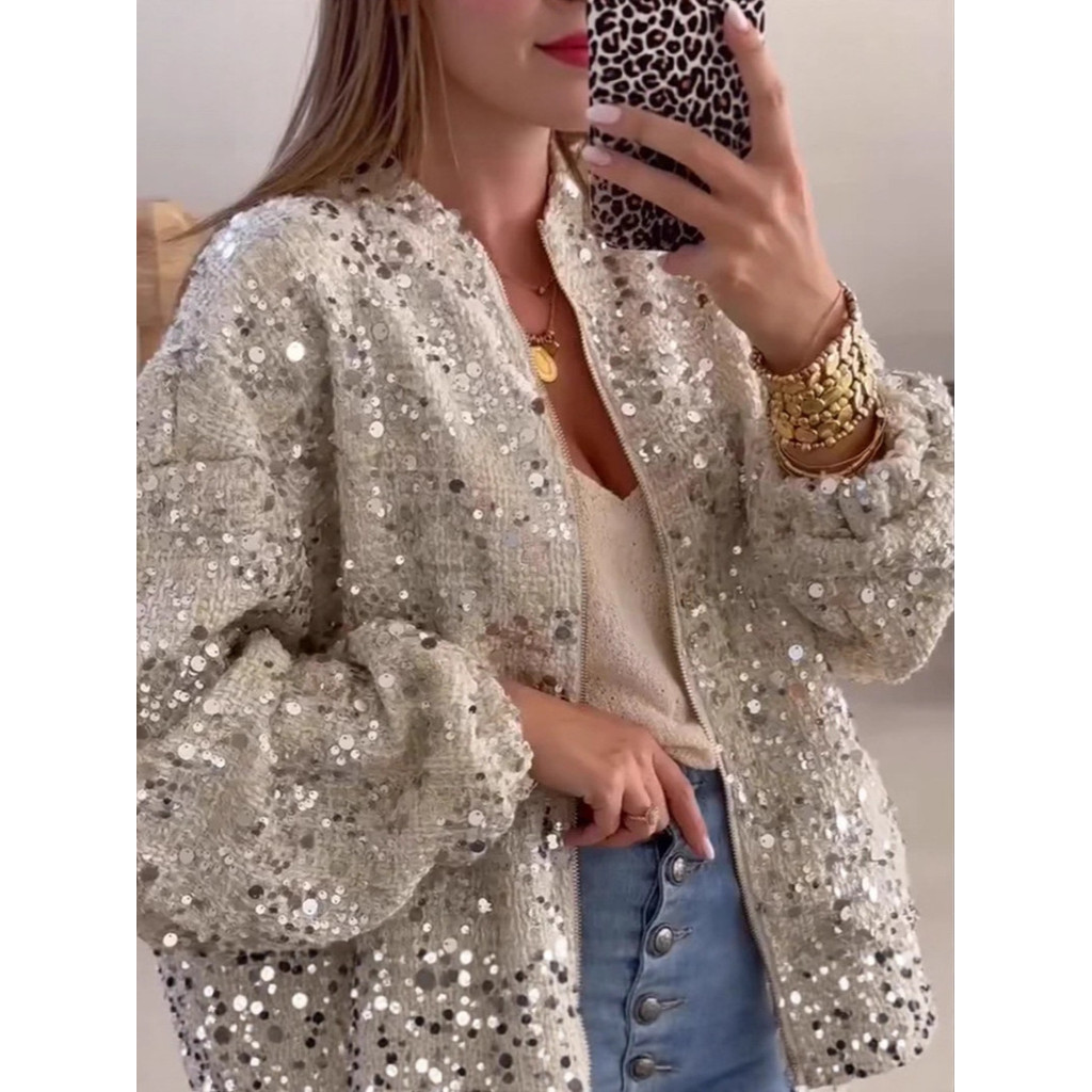 Áo khoác sequin thời trang phong cách Pháp, mùa thu mới, cao cấp, tay dài, áo khoác thoải mái cho phụ nữ