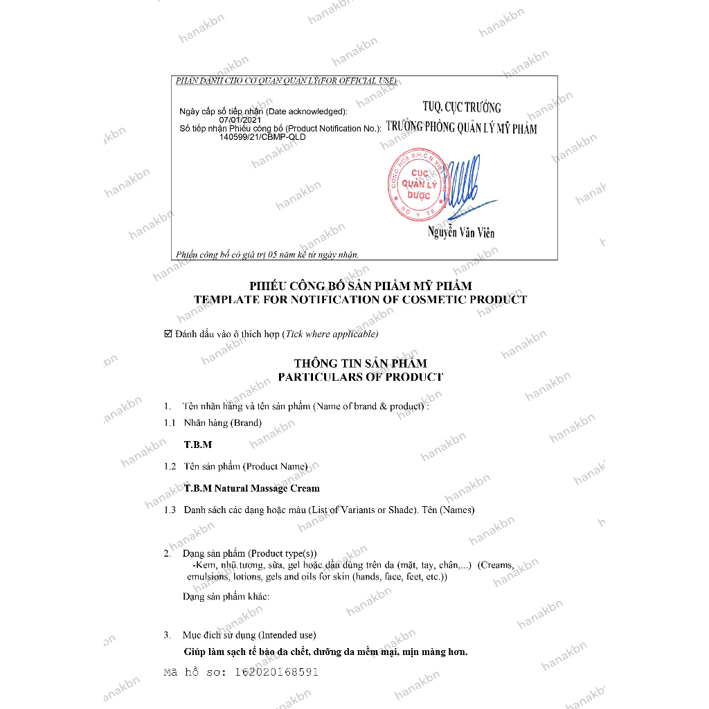[CÓ VAT] Kem Massage T.B.M Natural Chiết Xuất Tự Nhiên Cho Mặt Và Body 920g