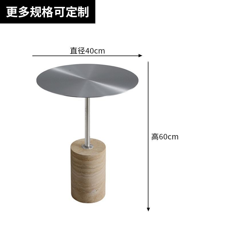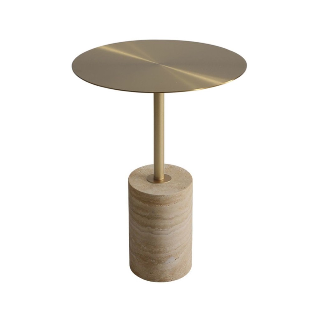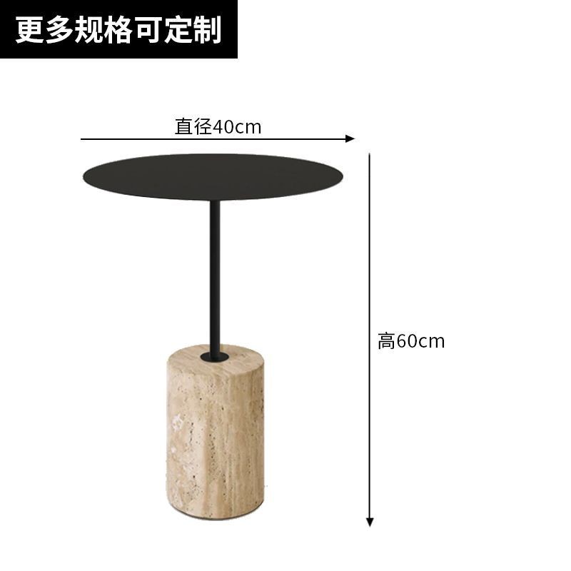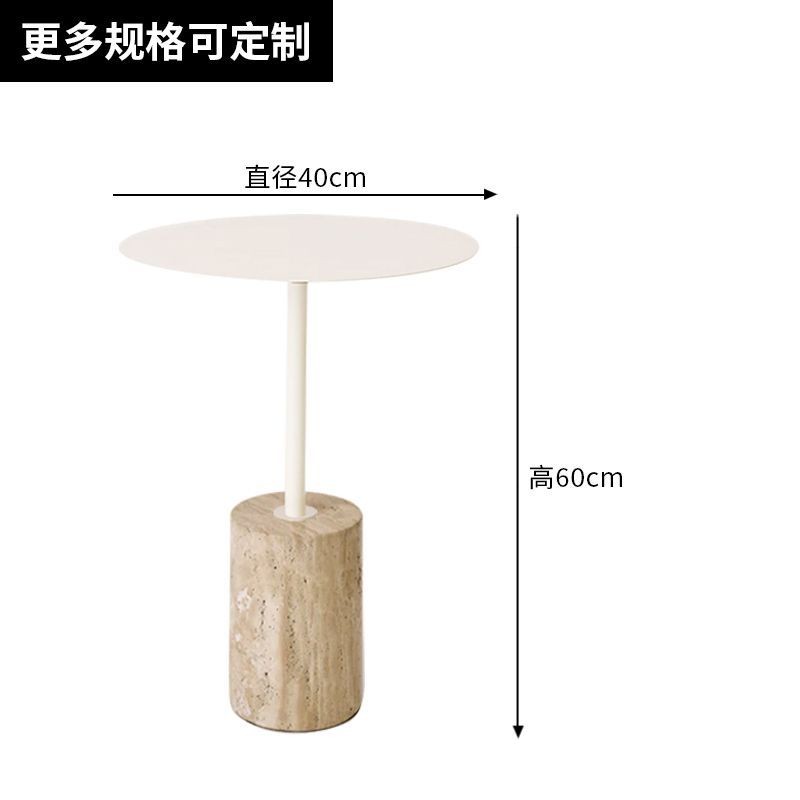 Bàn tròn nhỏ bằng đá travertine vàng tự nhiên hiện đại Bắc Âu, bàn cà phê nghệ thuật sắt cho phòng khách, bàn cạnh sofa