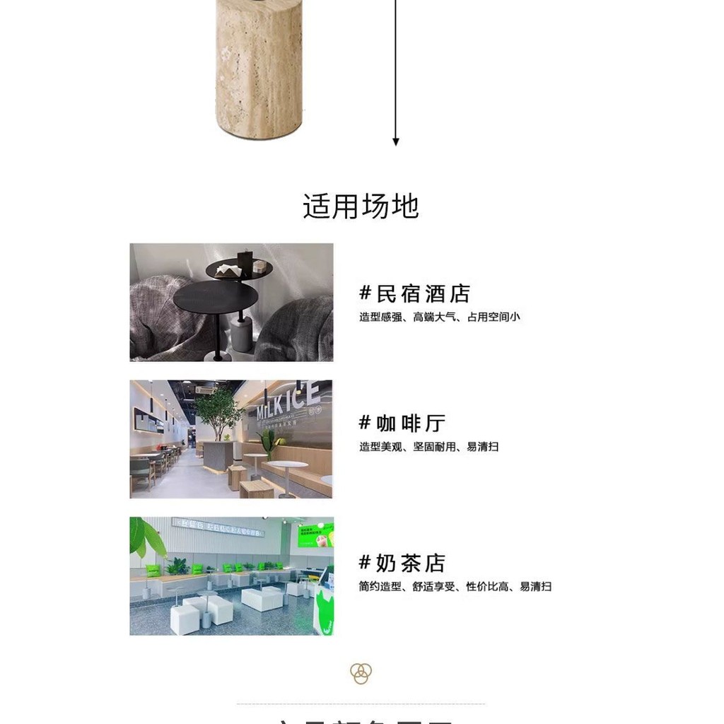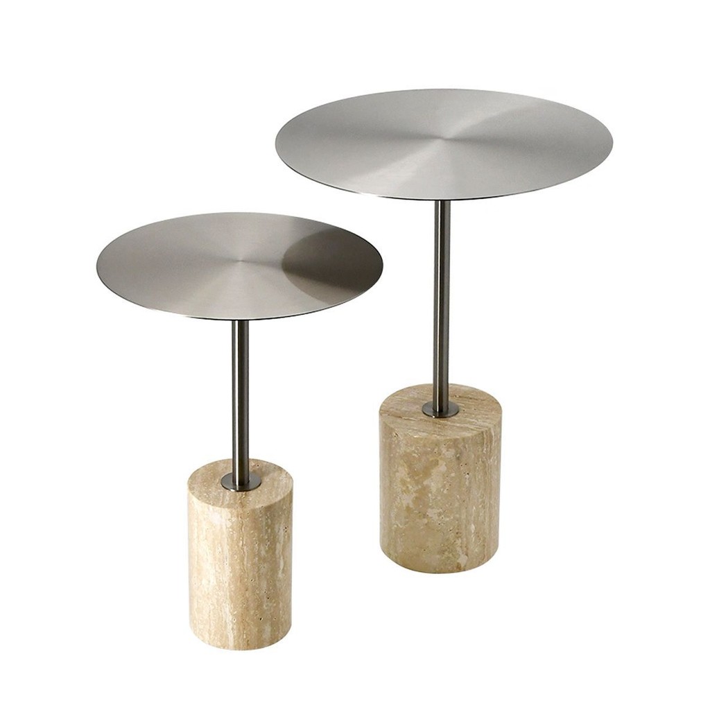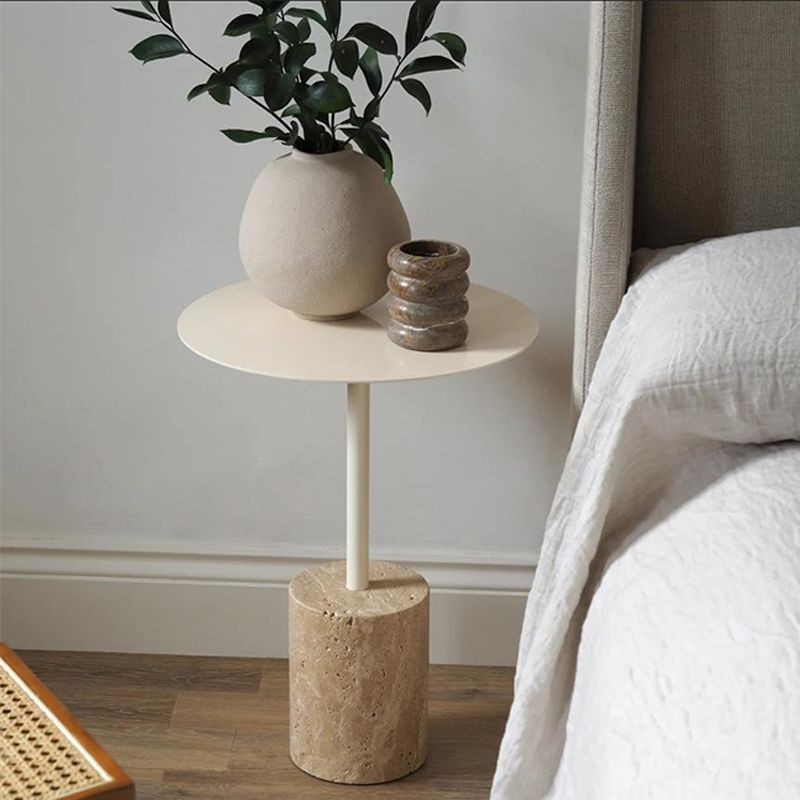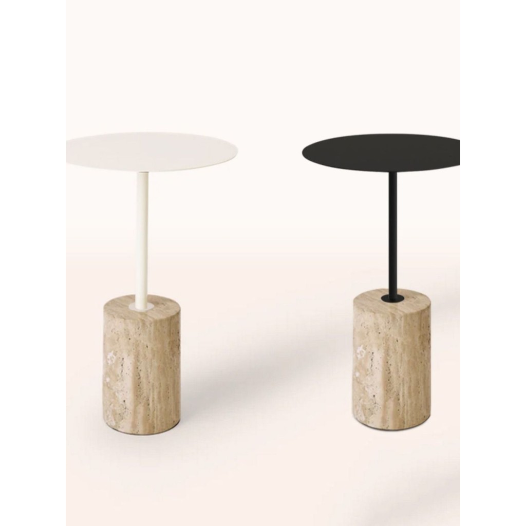 Bàn tròn nhỏ bằng đá travertine vàng tự nhiên hiện đại Bắc Âu, bàn cà phê nghệ thuật sắt cho phòng khách, bàn cạnh sofa