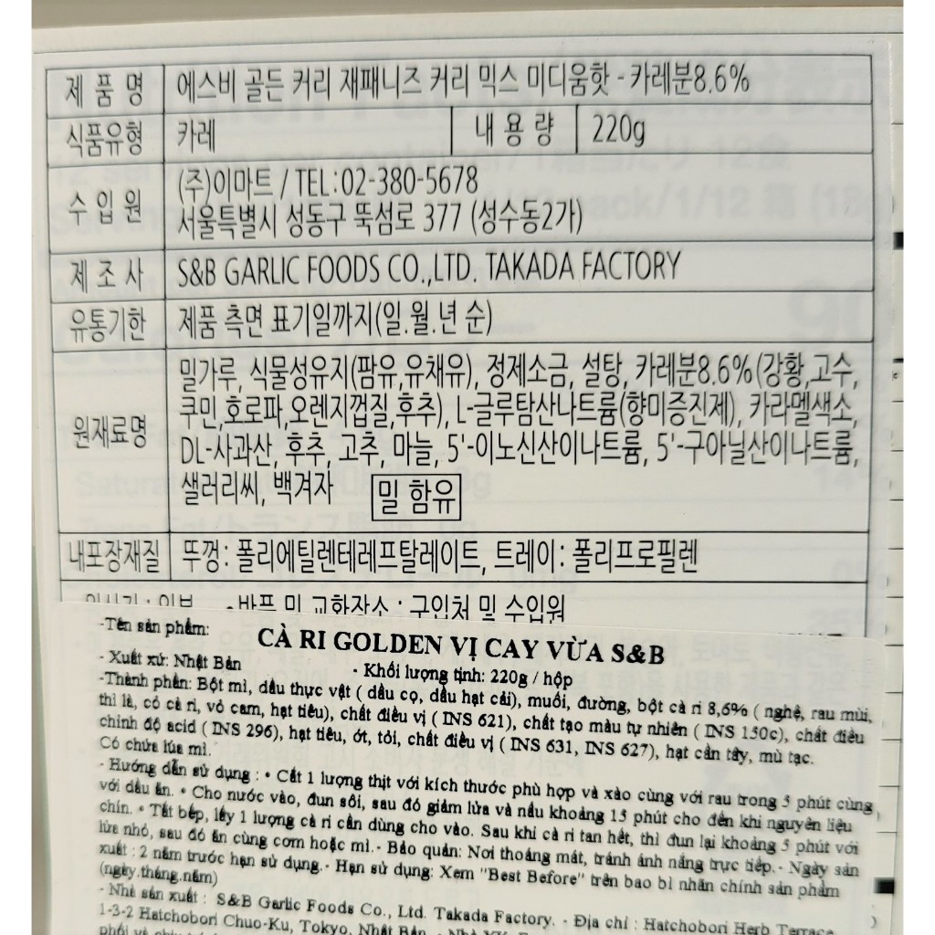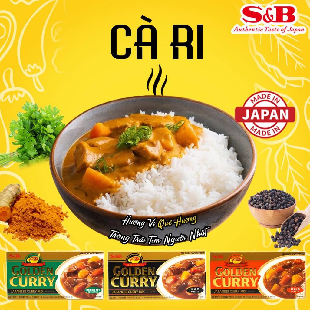 S&B < Hộp XANH LÁ 220g > VIÊN SỐT CÀ RI CAY VỪA / NHẬT BẢN / Golden Curry Mix Medium Hot