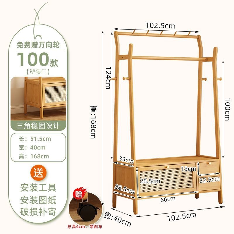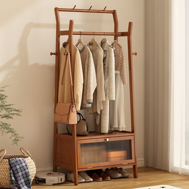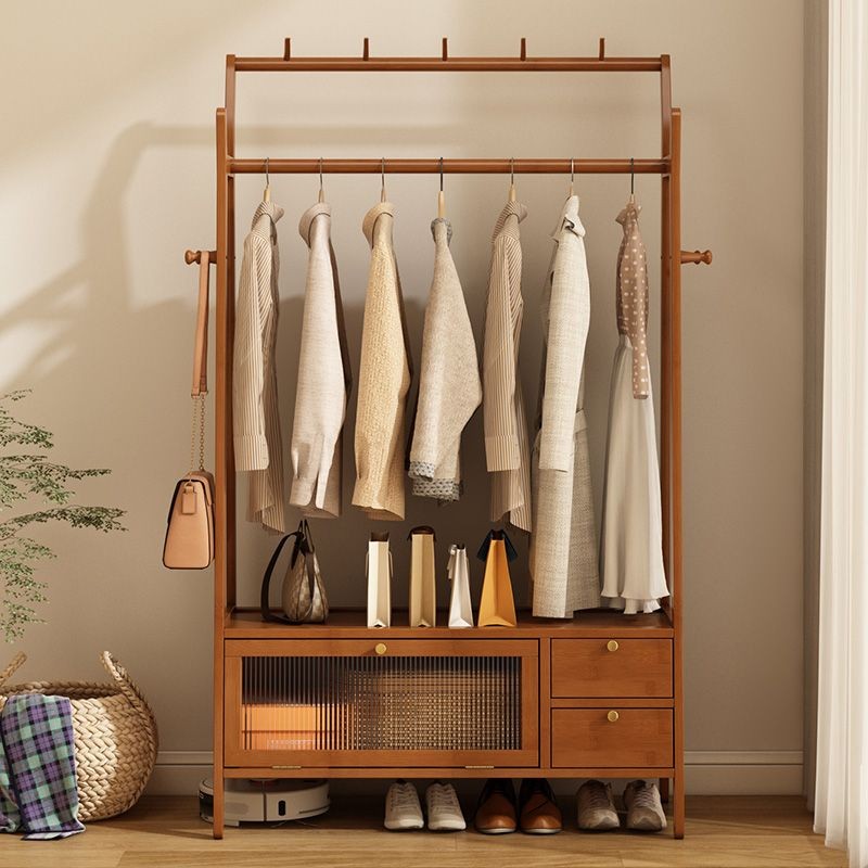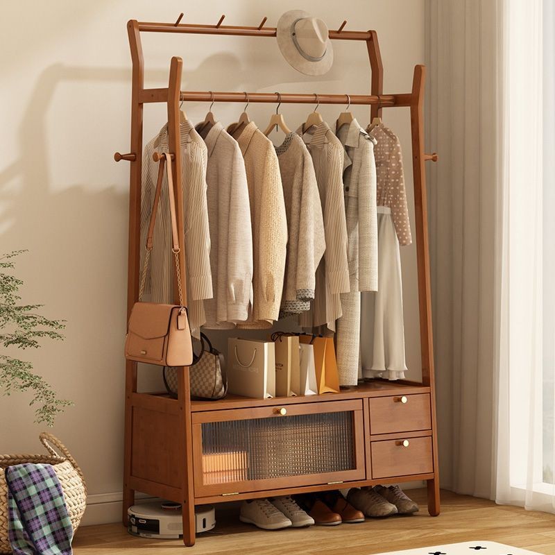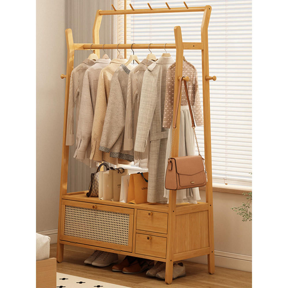 Giá treo phòng ngủ, giá treo đứng, di động với bánh xe, giá treo áo phong cách vintage màu kem, giá treo đa chức năng tr