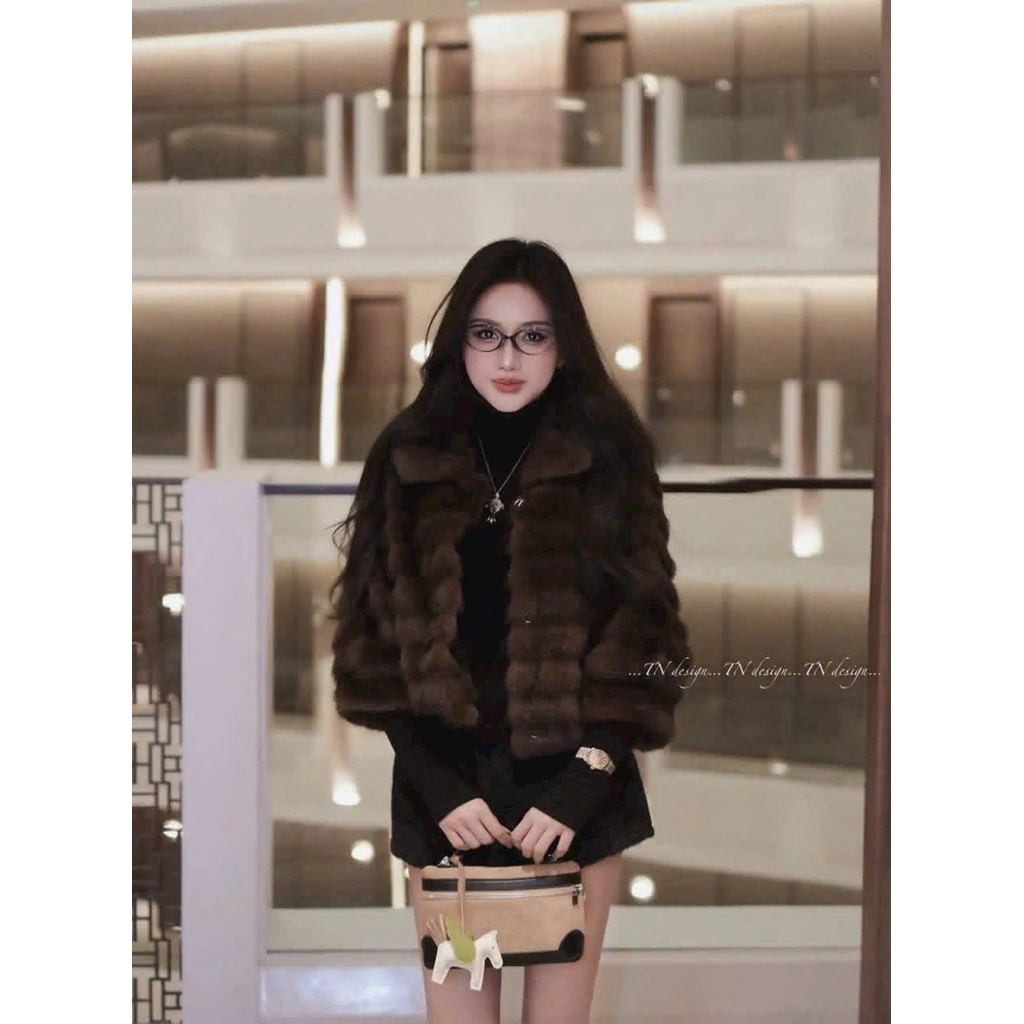 Áo khoác lông cắt nhiều tầng cổ sen